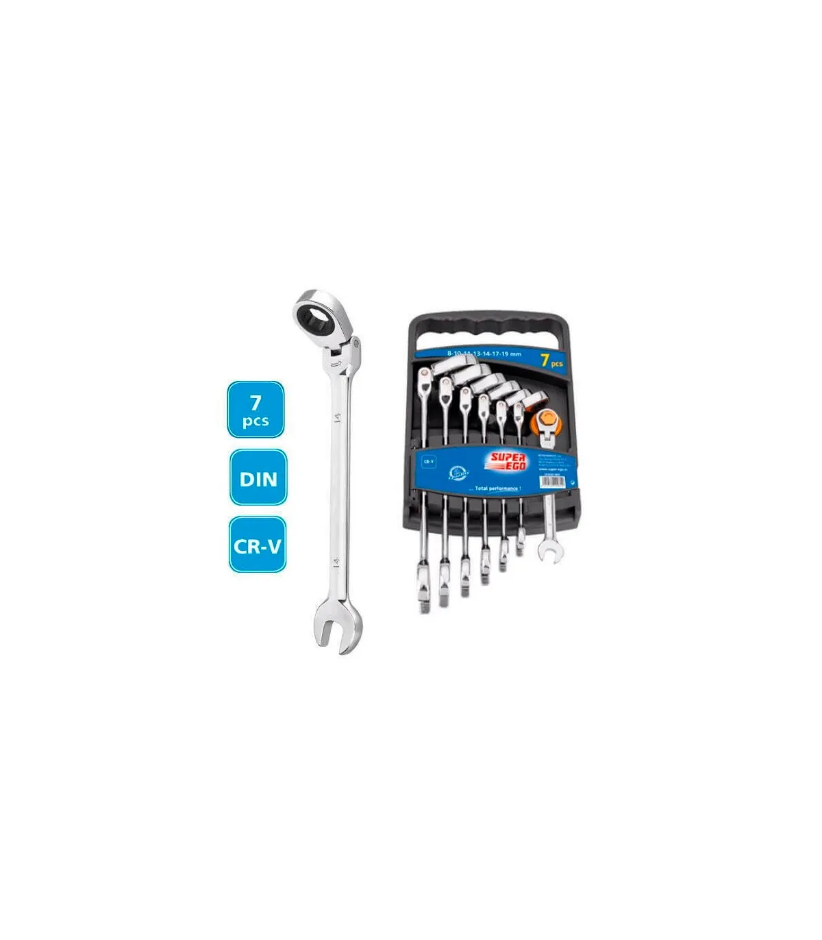 Juego 7 llaves mixta con carraca de 8 a 19mm, calidad SUPER EGO