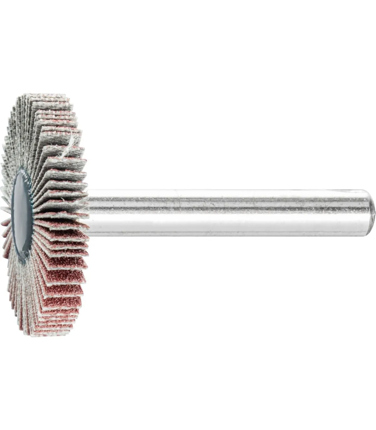 Las láminas de lija van montadas en forma de abanico radial alrededor del eje de la herramienta. Se adaptan a todos los perfiles de la pieza a trabajar logrando un lijado simultáneo de resaltes y hendiduras de la pieza. La base de las láminas es una tela resistente al desgarro con aglomerante sintético.