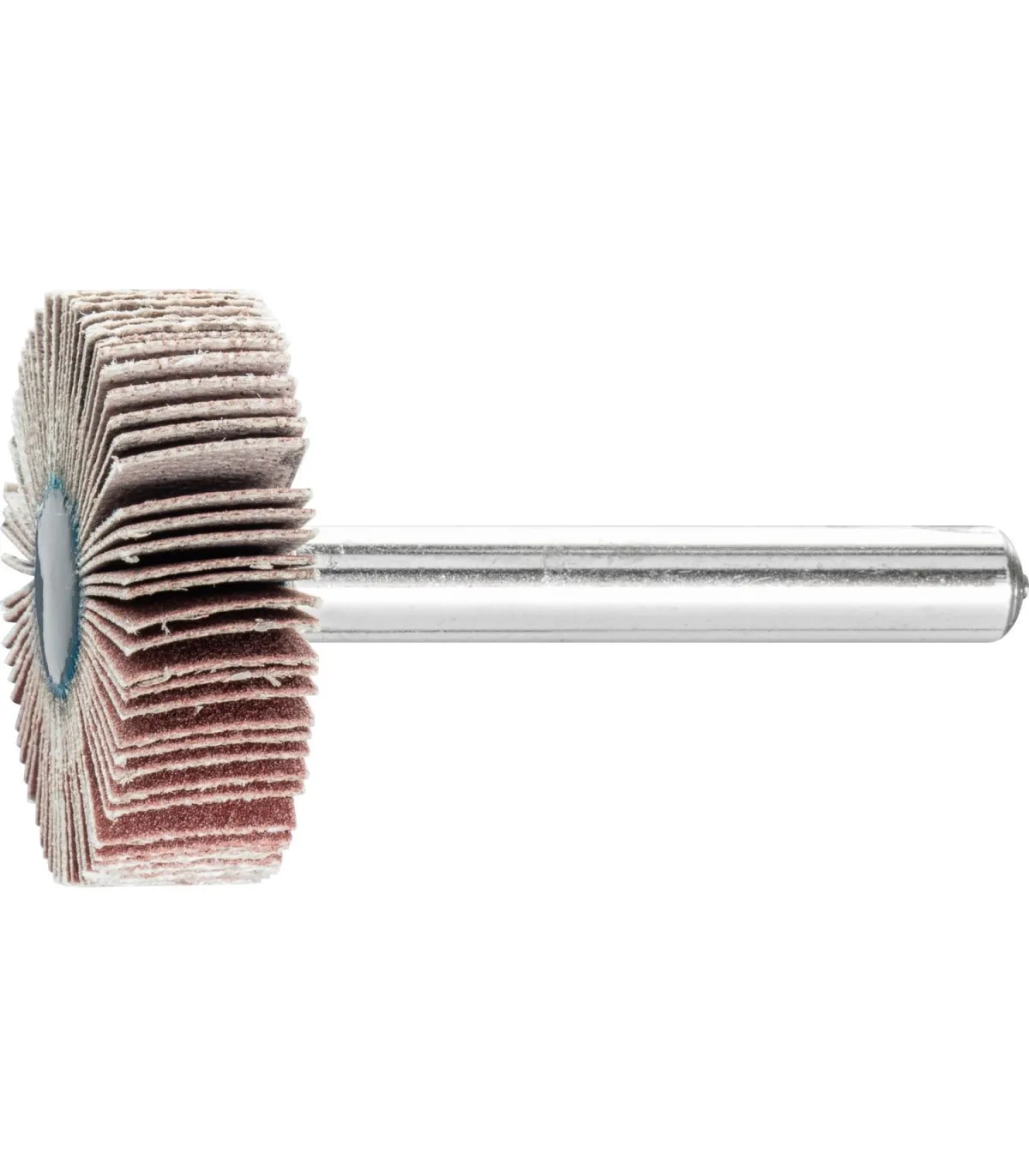 Las láminas de lija van montadas en forma de abanico radial alrededor del eje de la herramienta. Se adaptan a todos los perfiles de la pieza a trabajar logrando un lijado simultáneo de resaltes y hendiduras de la pieza. La base de las láminas es una tela resistente al desgarro con aglomerante sintético.