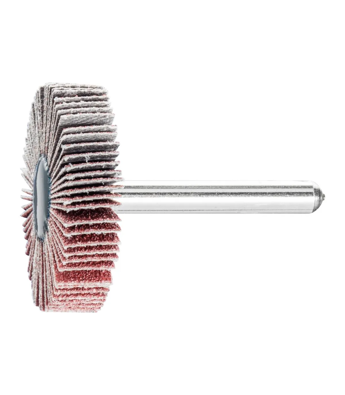 Las láminas de lija van montadas en forma de abanico radial alrededor del eje de la herramienta. Se adaptan a todos los perfiles de la pieza a trabajar logrando un lijado simultáneo de resaltes y hendiduras de la pieza. La base de las láminas es una tela resistente al desgarro con aglomerante sintético.