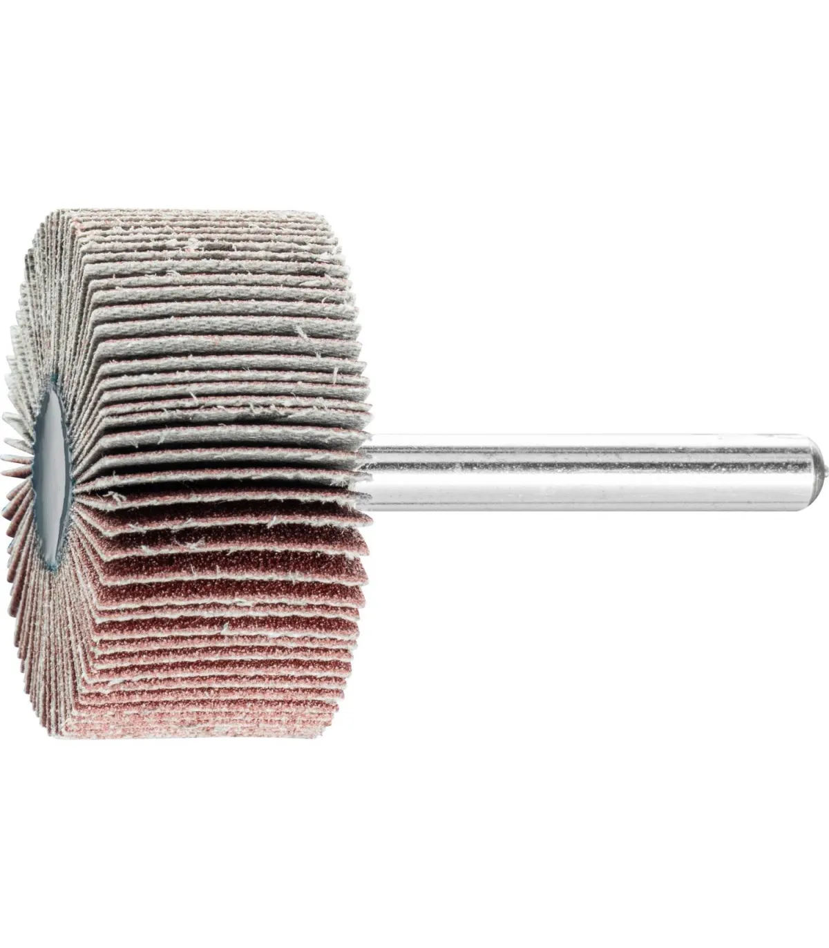 Las láminas de lija van montadas en forma de abanico radial alrededor del eje de la herramienta. Se adaptan a todos los perfiles de la pieza a trabajar logrando un lijado simultáneo de resaltes y hendiduras de la pieza. La base de las láminas es una tela resistente al desgarro con aglomerante sintético.