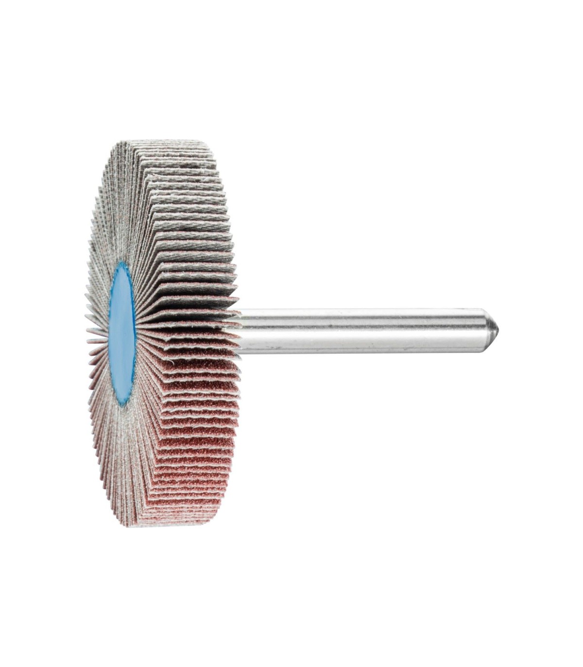 Las láminas de lija van montadas en forma de abanico radial alrededor del eje de la herramienta. Se adaptan a todos los perfiles de la pieza a trabajar logrando un lijado simultáneo de resaltes y hendiduras de la pieza. La base de las láminas es una tela resistente al desgarro con aglomerante sintético.