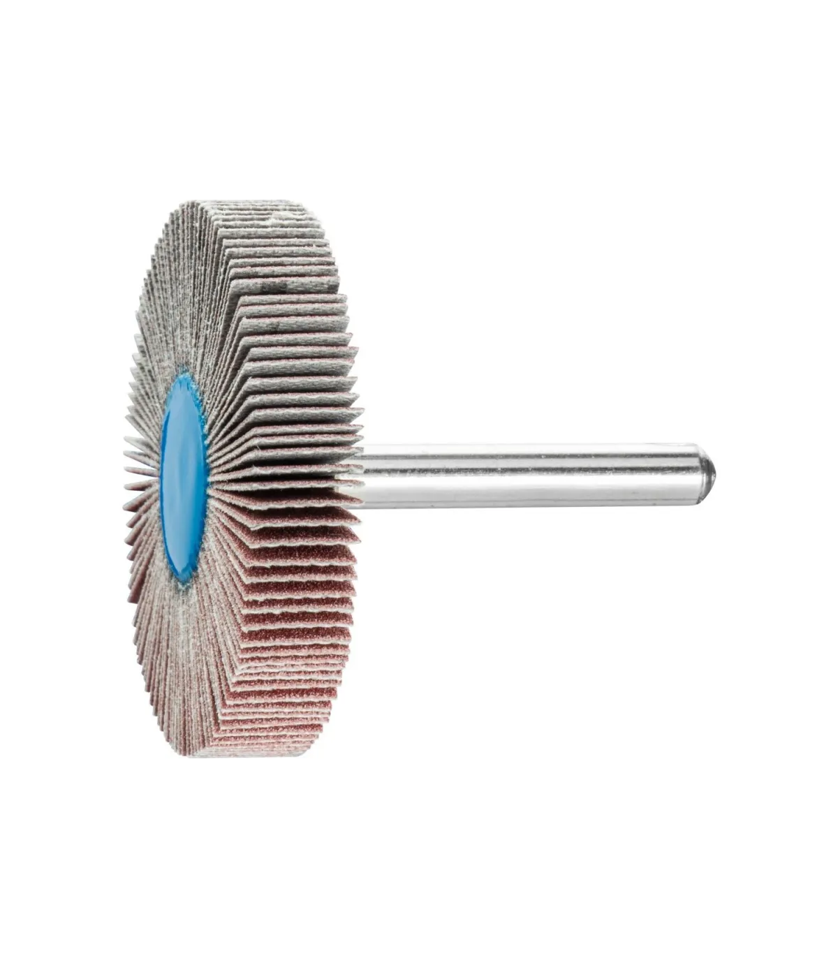Las láminas de lija van montadas en forma de abanico radial alrededor del eje de la herramienta. Se adaptan a todos los perfiles de la pieza a trabajar logrando un lijado simultáneo de resaltes y hendiduras de la pieza. La base de las láminas es una tela resistente al desgarro con aglomerante sintético.