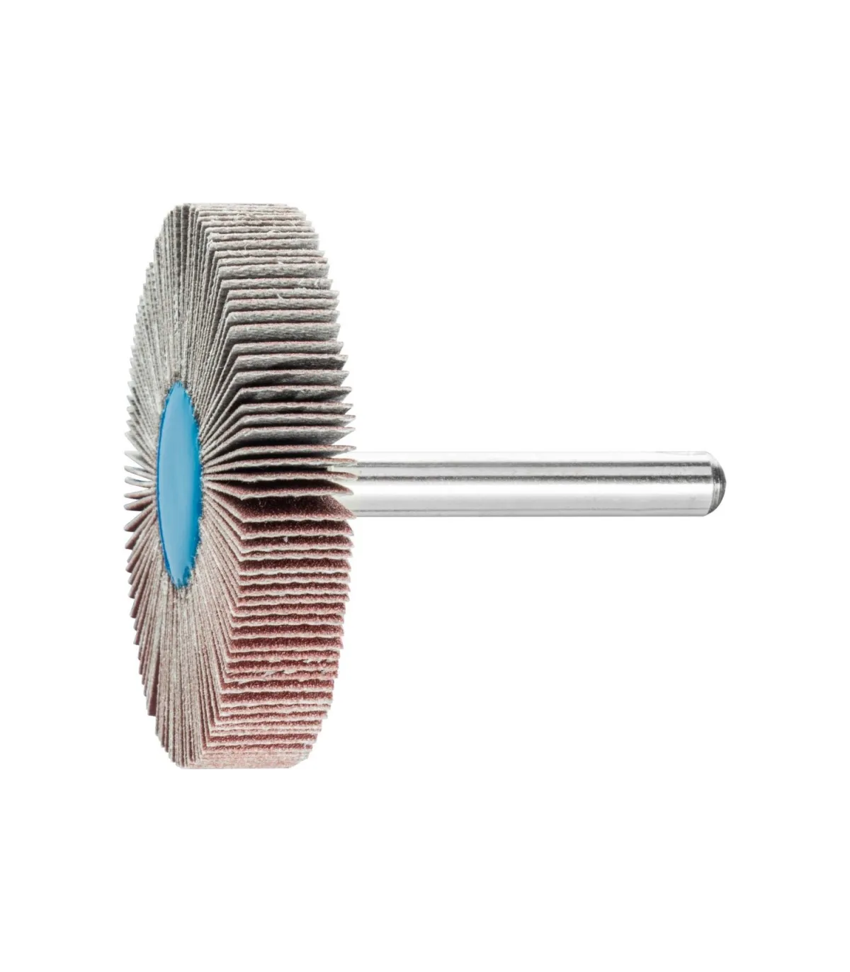 Las láminas de lija van montadas en forma de abanico radial alrededor del eje de la herramienta. Se adaptan a todos los perfiles de la pieza a trabajar logrando un lijado simultáneo de resaltes y hendiduras de la pieza. La base de las láminas es una tela resistente al desgarro con aglomerante sintético.