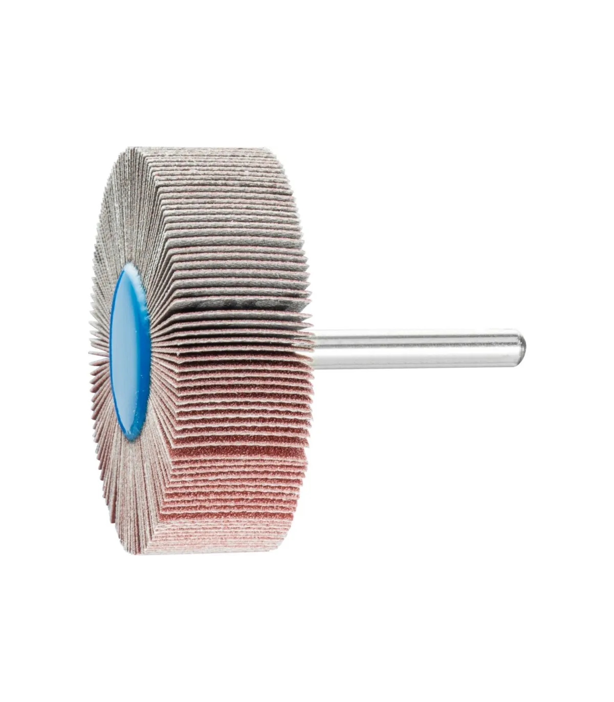 Las láminas de lija van montadas en forma de abanico radial alrededor del eje de la herramienta. Se adaptan a todos los perfiles de la pieza a trabajar logrando un lijado simultáneo de resaltes y hendiduras de la pieza. La base de las láminas es una tela resistente al desgarro con aglomerante sintético.