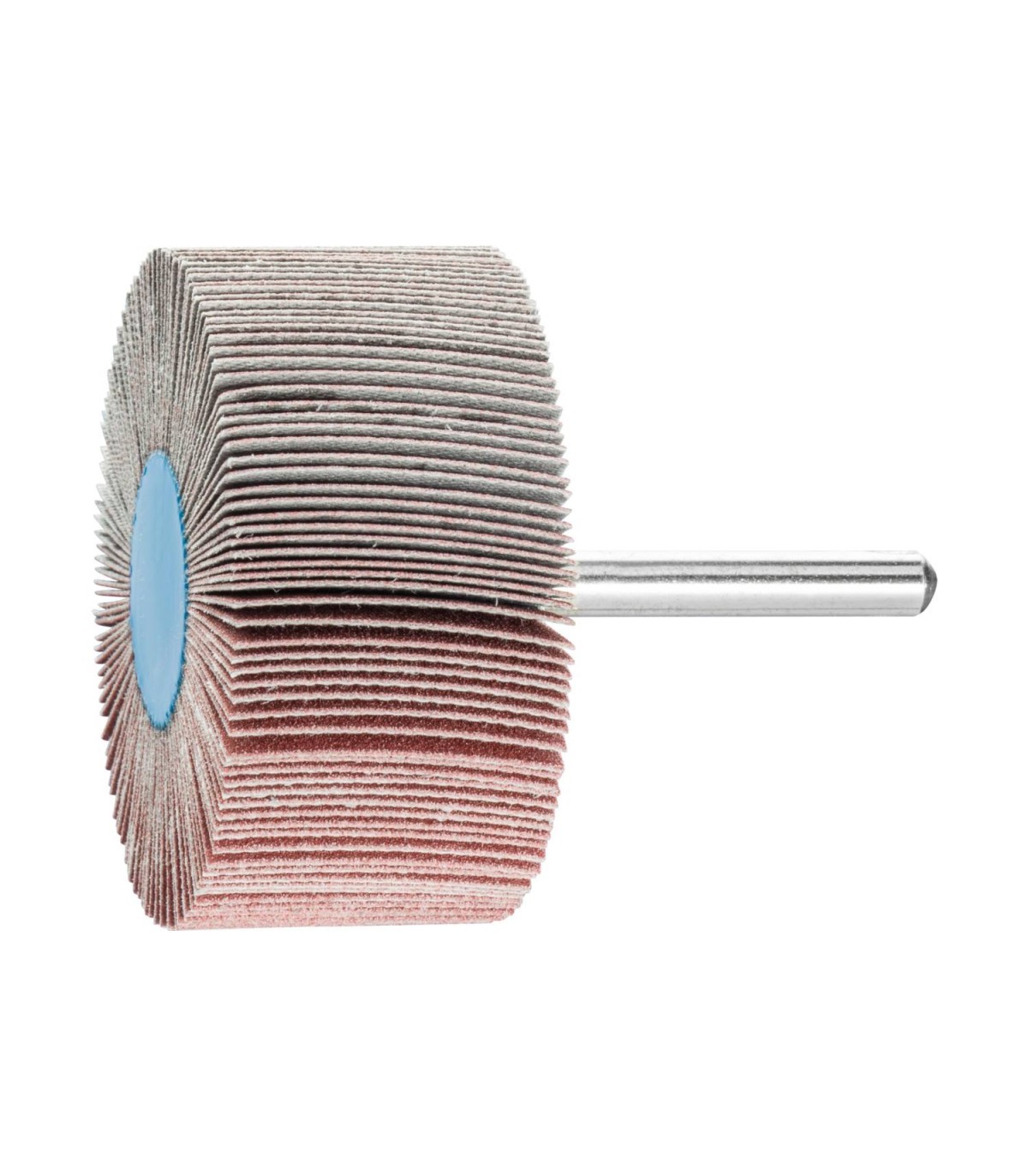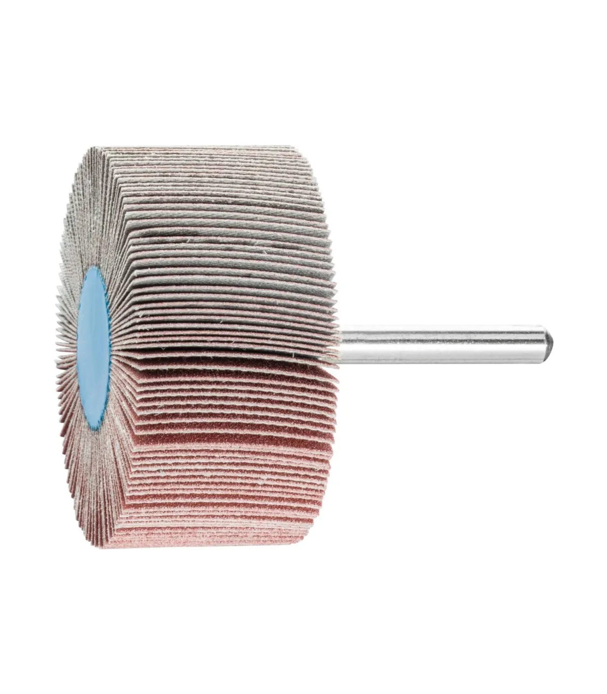 Las láminas de lija van montadas en forma de abanico radial alrededor del eje de la herramienta. Se adaptan a todos los perfiles de la pieza a trabajar logrando un lijado simultáneo de resaltes y hendiduras de la pieza. La base de las láminas es una tela resistente al desgarro con aglomerante sintético.