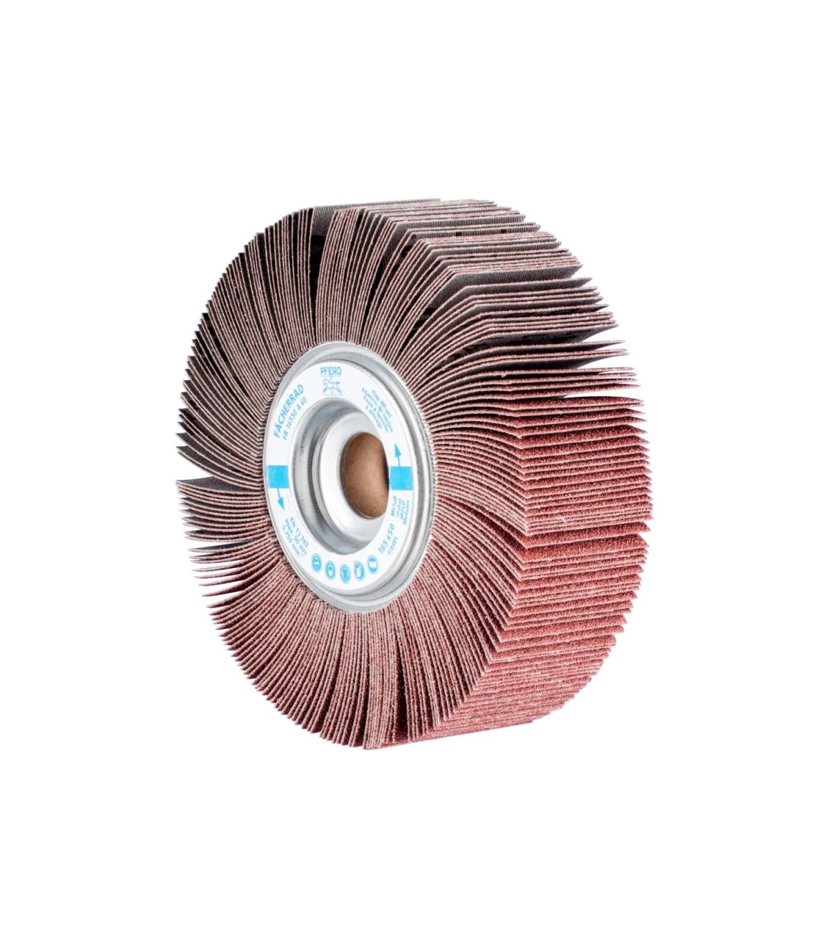 Las láminas del abrasivo van montadas sobre una base en forma de abanico radial alrededor del eje de la herramienta.  Se adaptan a todos los perfiles de la pieza a trabajar. La base de las láminas es una tela resistente al desgarro con aglomerante de resina sintética.