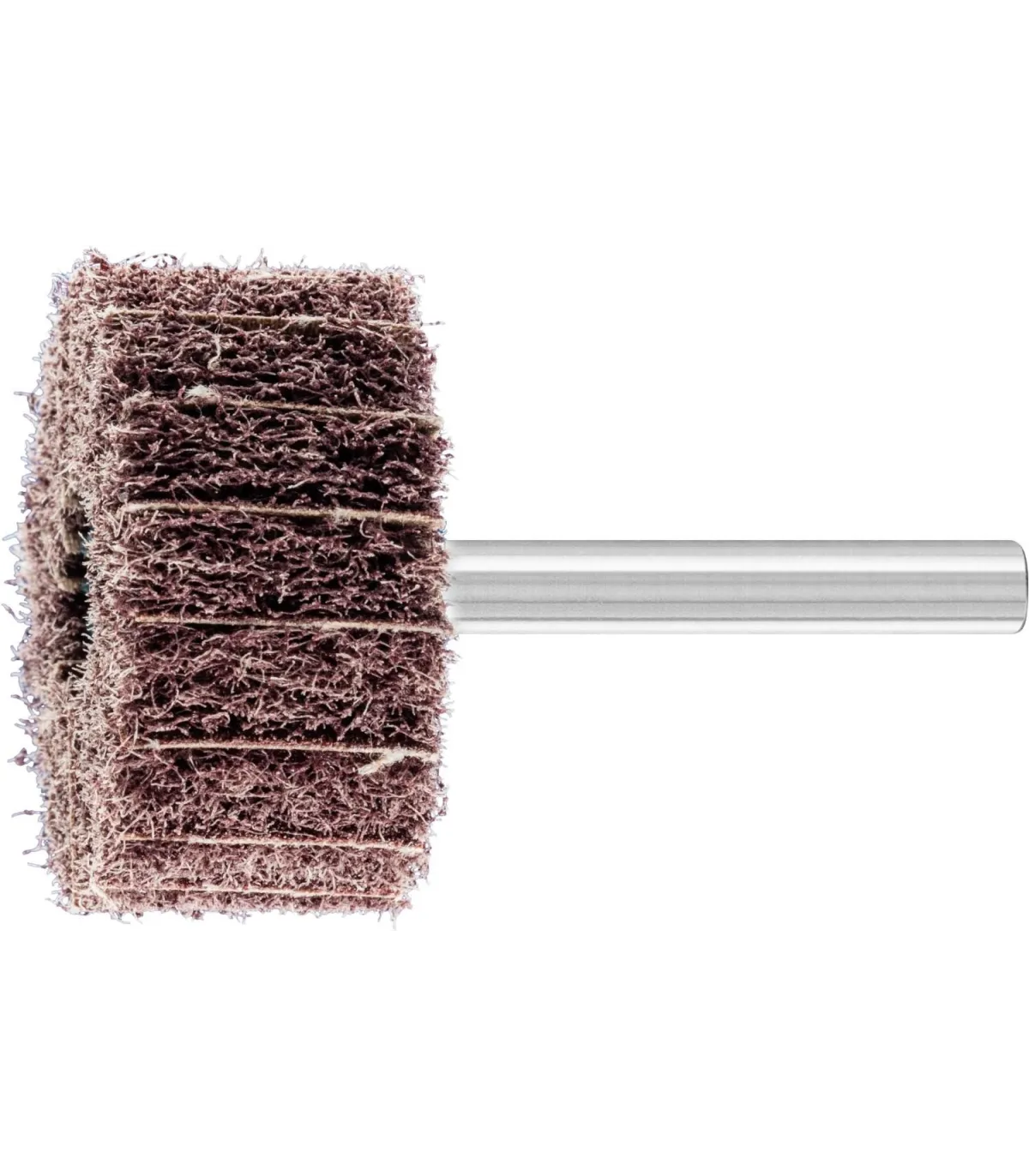 Láminas de vellón dispuestas radialmente e intercaladas con láminas de lija. Esto garantiza un mayor arranque de material y la superficie adquiere, al mismo tiempo, un aspecto más basto. Abrasivo: Corindón A.