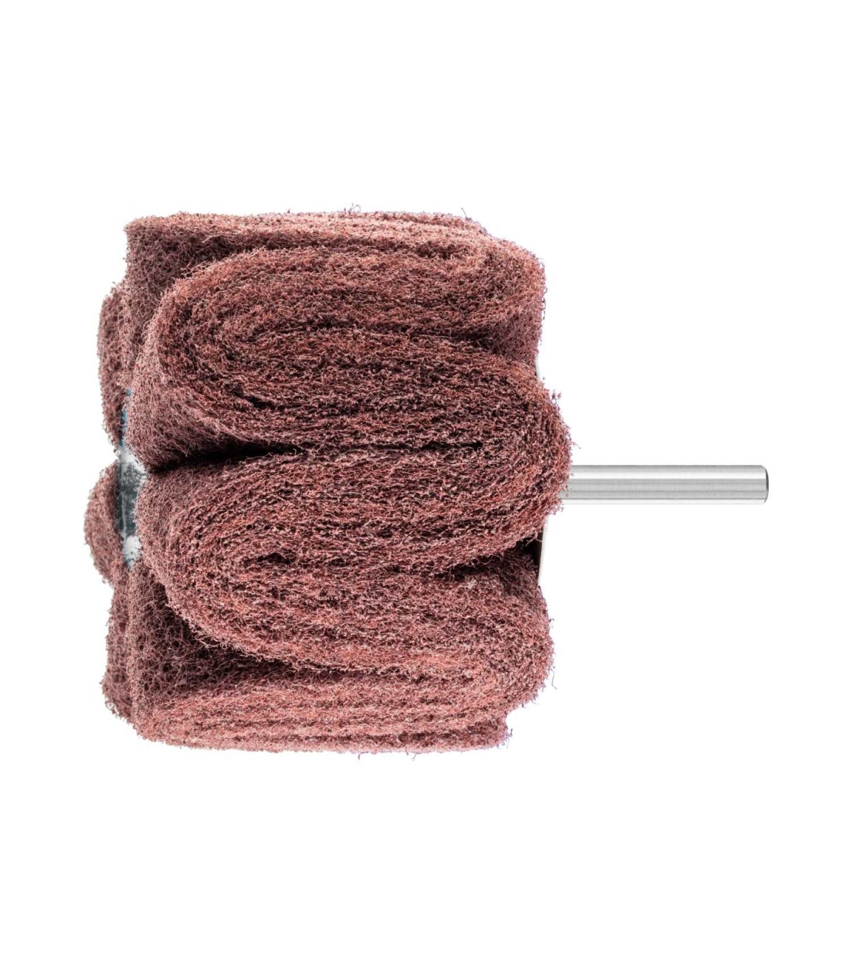 Láminas de vellón muy onduladas dispuestas axialmente alrededor de un núcleo, garantizando así un matizado sin marcas de superficies. Abrasivo: Corindón A.