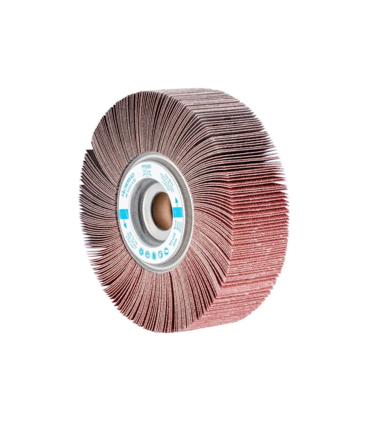Las láminas del abrasivo van montadas sobre una base en forma de abanico radial alrededor del eje de la herramienta.  Se adaptan a todos los perfiles de la pieza a trabajar. La base de las láminas es una tela resistente al desgarro con aglomerante de resina sintética.