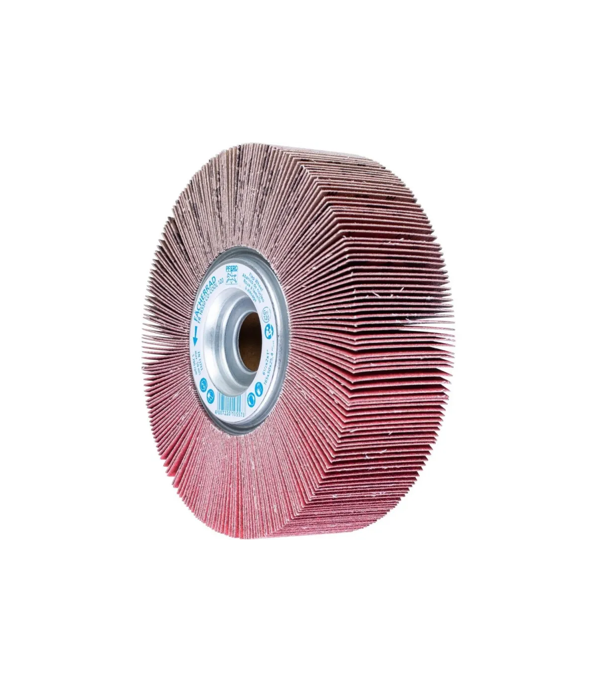Las láminas del abrasivo van montadas sobre una base en forma de abanico radial alrededor del eje de la herramienta.  Se adaptan a todos los perfiles de la pieza a trabajar. La base de las láminas es una tela resistente al desgarro con aglomerante de resina sintética.