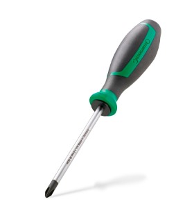 Destornillador de mango bimaterial con gel para adaptarse a cualquier mano en cualquier momento de esfuerzo.