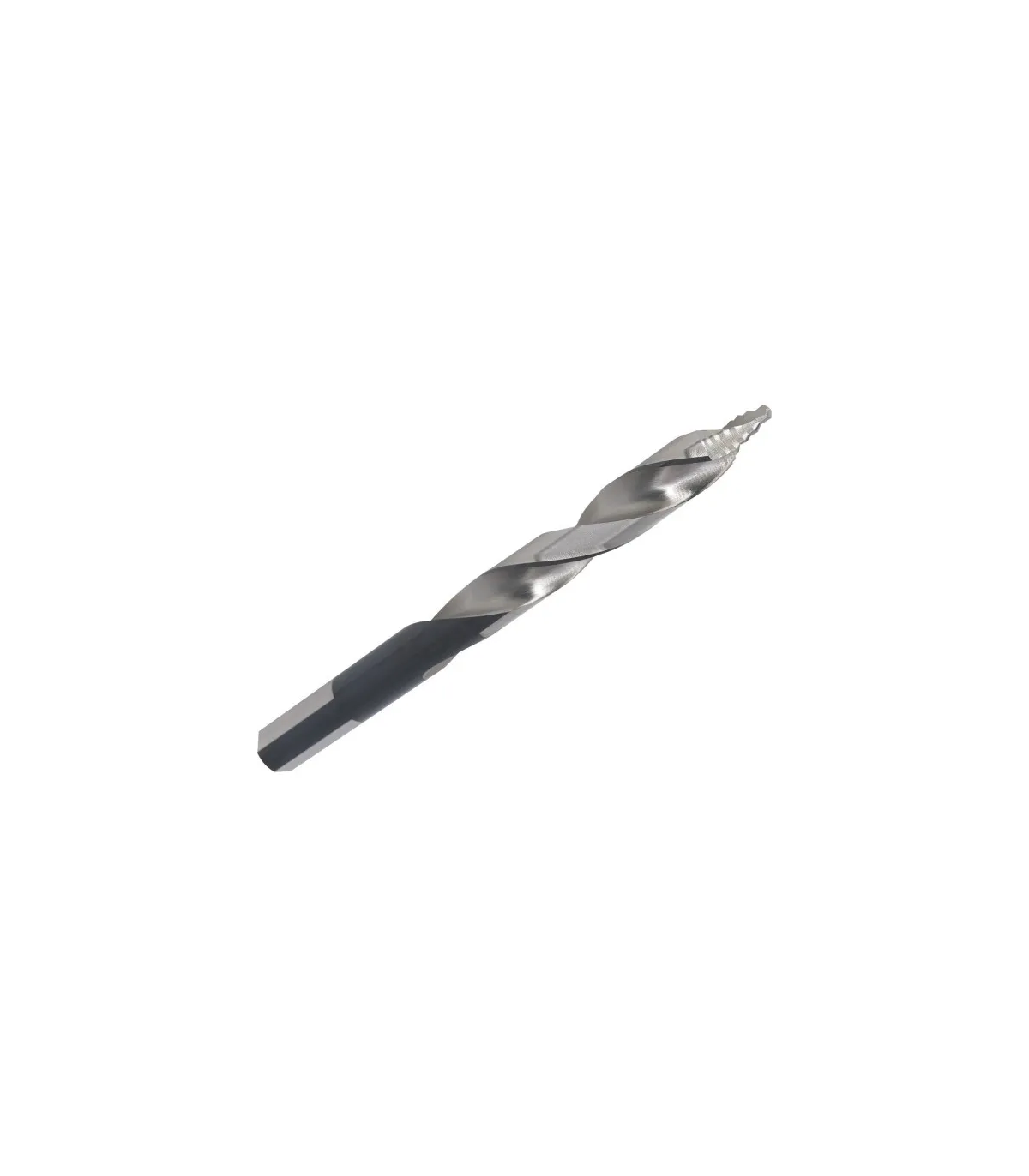 Innovadora broca helicoidal-punta escalonada para corte en metales y en especial para taladrado de agujeros existentes.