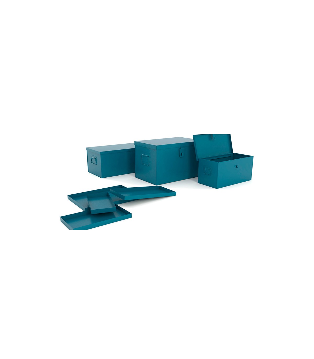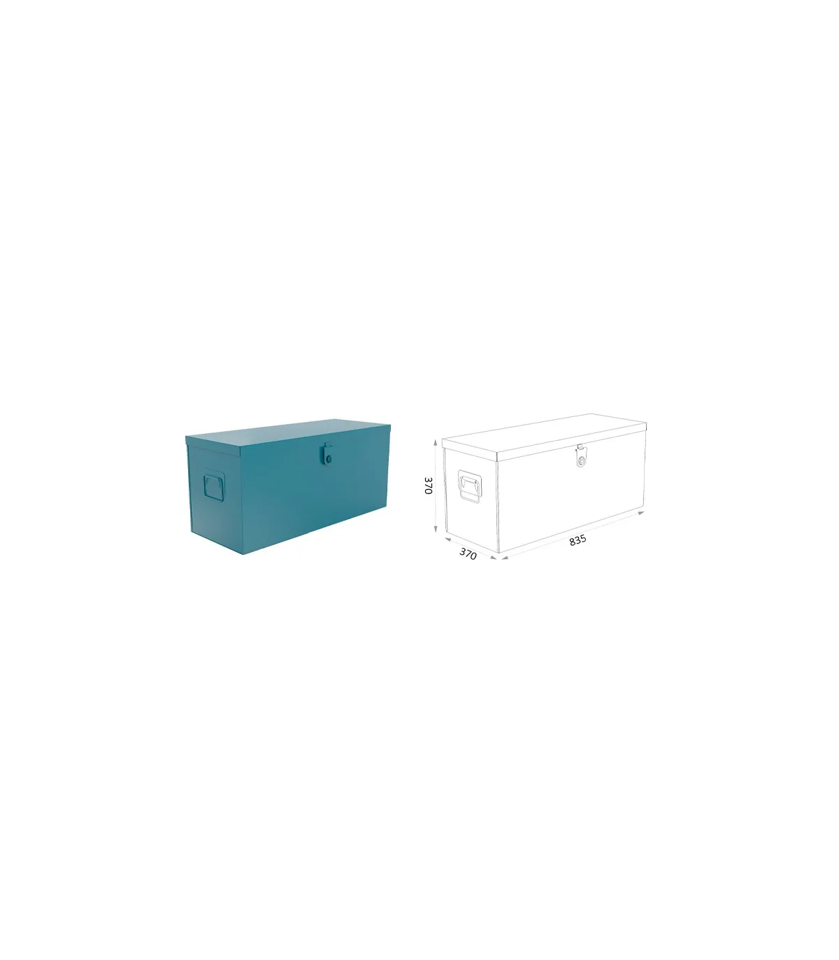 Cajón arcón de gran capacidad y con asa abatible, integramente en chapa de acero pintado epoxi, ideal para todo tipo de almacenaje de herramientas. Con refuerzos y soportes para bandeja.