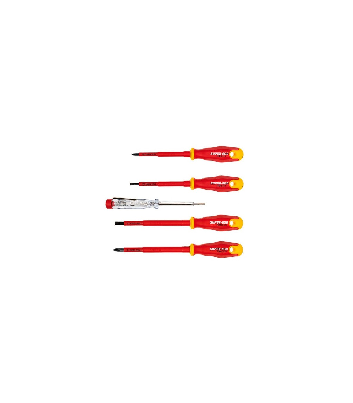 Set de 4 destornilladores con tester 1000 V para el uso en bricolaje, mecánica, trabajos de mantenimiento.