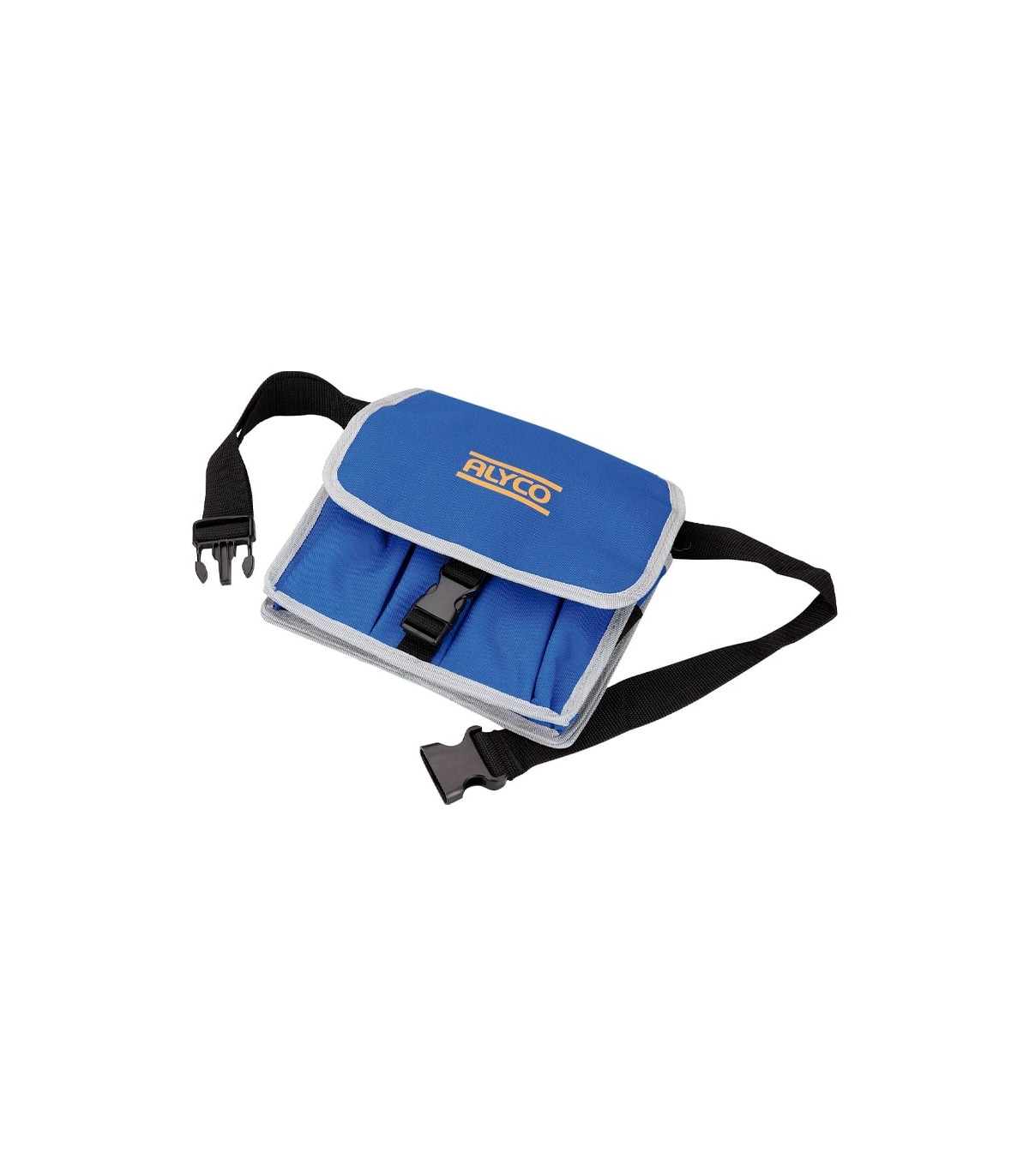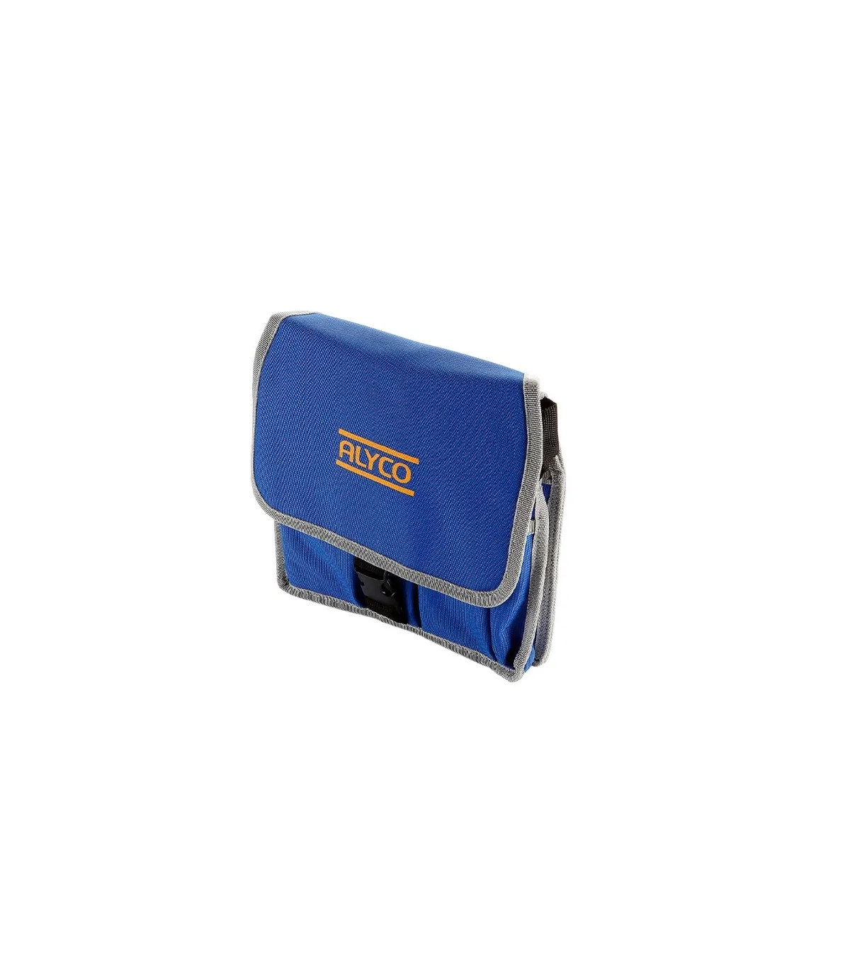 Conjunto surtido de bolsa de nylon con alojamiento principal y 4 bolsillos con tapa con cierre de clip incluyendo 8 herramientas aptas para electricista.