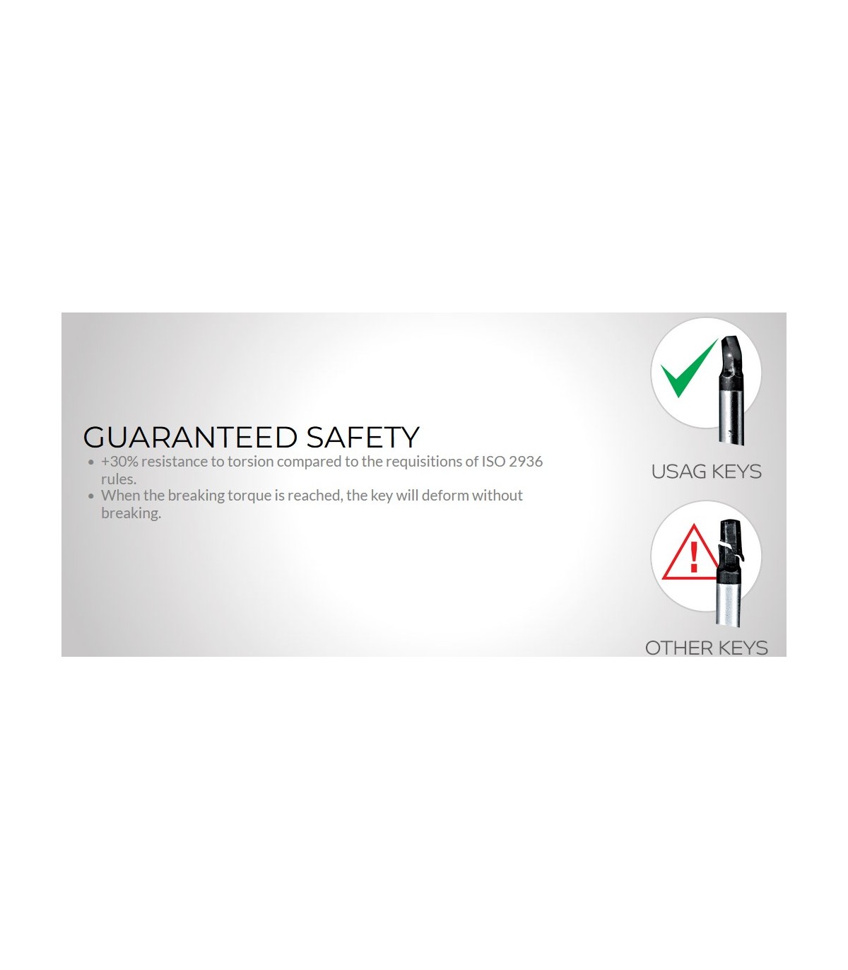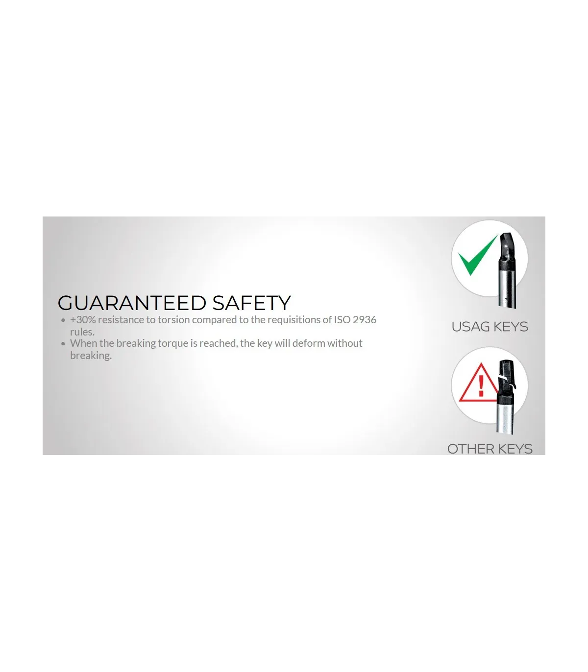 Garantía de seguridad que obliga a la llave a torsionarse siempre permitiendo al usuario reconocer el alcance del límite de aprieta de la llave y evitando el riesgo de rotura y daños para el trabajador. En estos casos, tal como se alerte defecto deberá sustituir la llave y proceder al apriete o desapriete con otro medio mecánico.