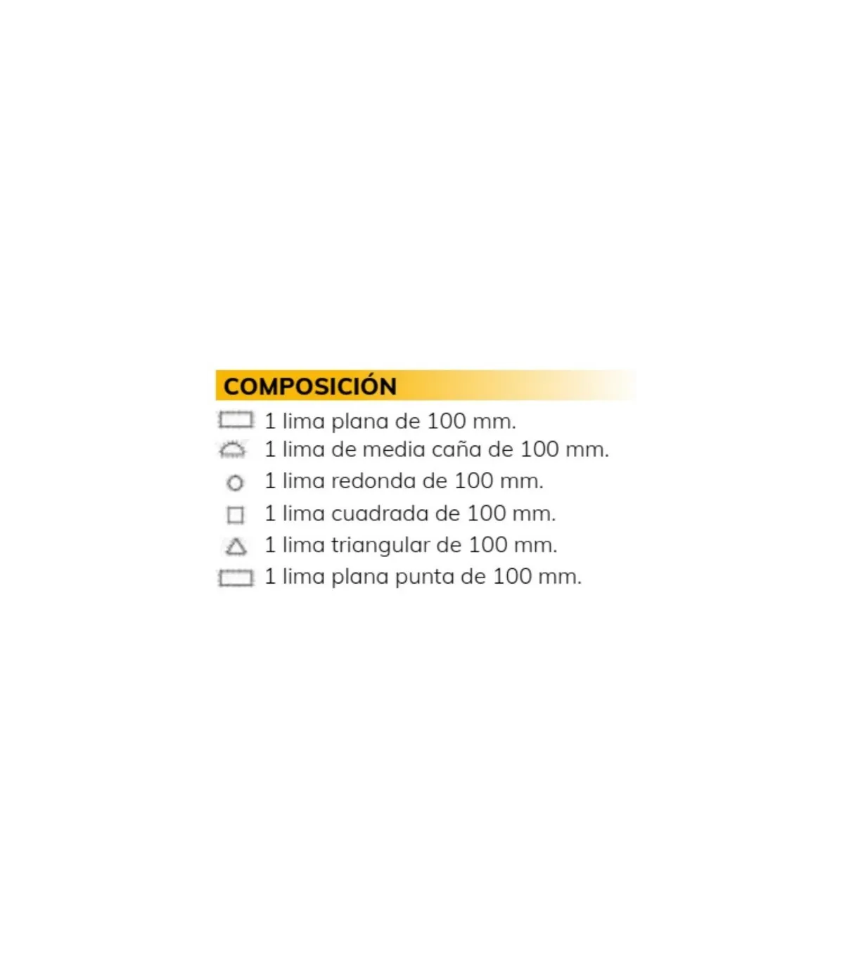 Juego de 6 limas taller 100mm con mango