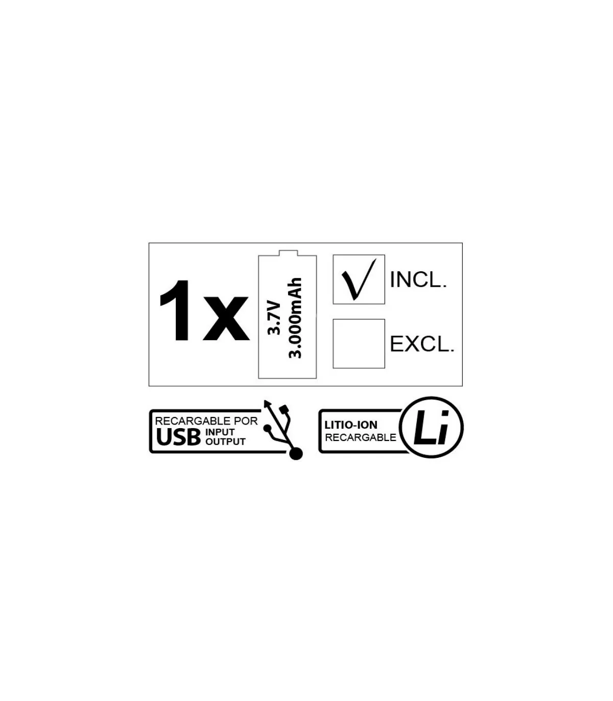 Batería: Recargable Litio 1x 3.7V 3.000mAh incluida