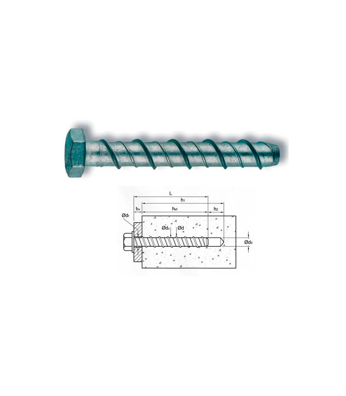Tornillo para hormigón con rosca de fijación directa para uso en hormigón fisurado y no fisurado: el anclaje se atornilla en el agujero previamente taladrado en el material base..