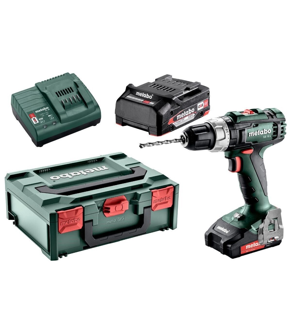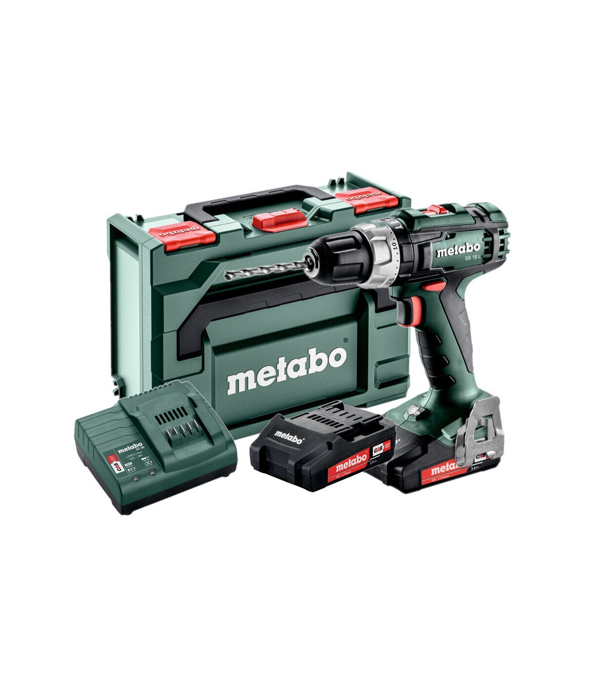 Taladro percutor Metabo SB18L con 2 baterias 18V 2Ah, cargador y Metabox.