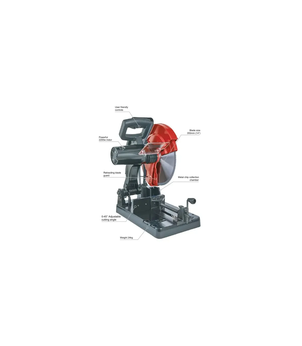 Con interruptor de sobrecarga, protector de sierra retráctil, cámara para recogida de viruta y extracción-vaciado rápido.