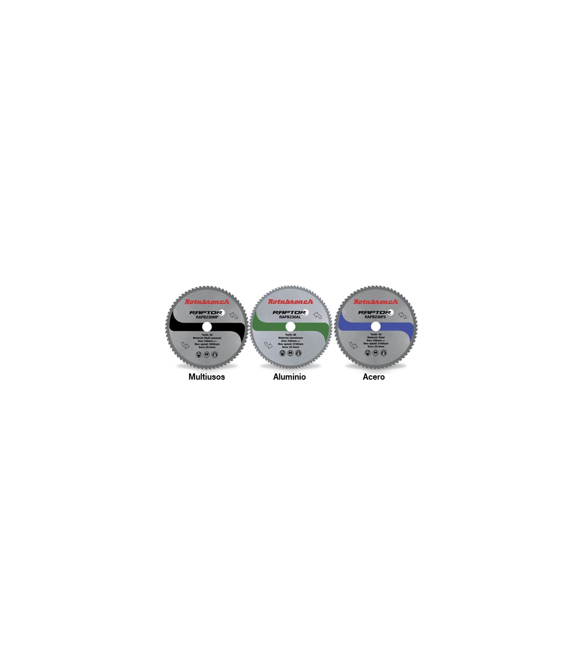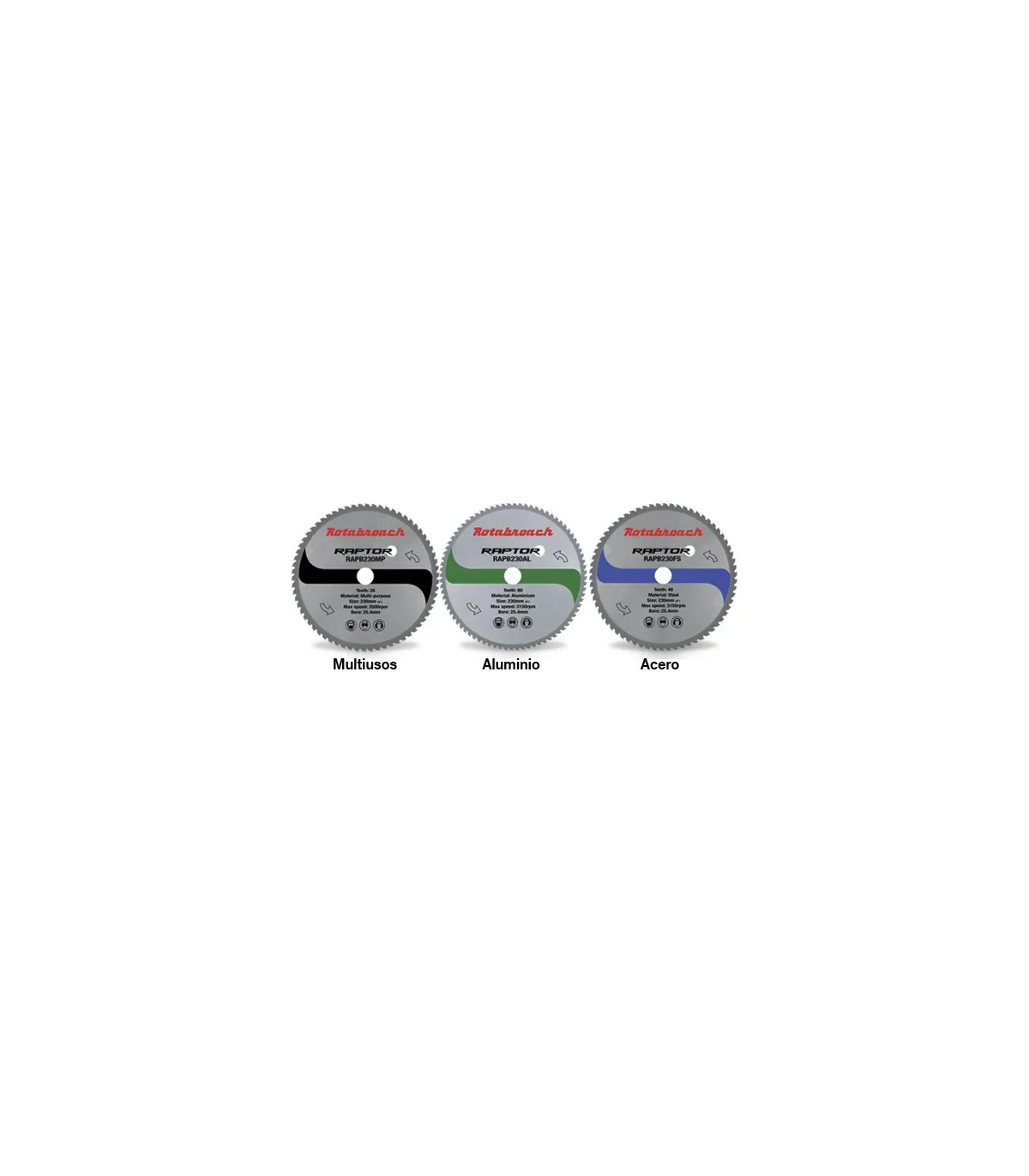 Viene con disco Ø355MM Z24  para corte de aceros. Existen discos especiales para aluminio y multiuso.