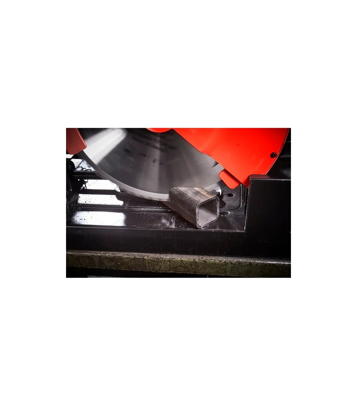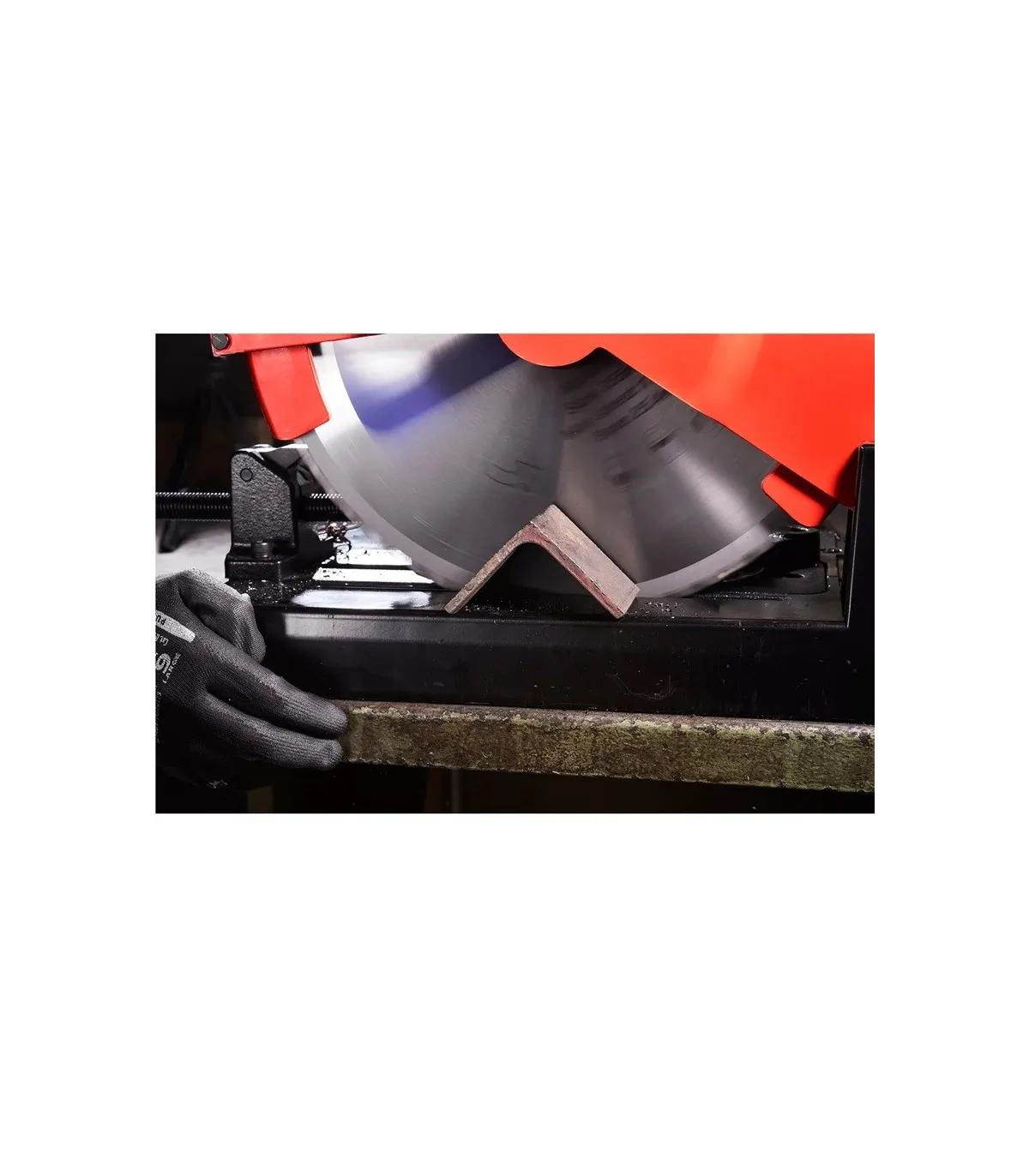 Tronzadora de corte por disco dentado -arranque de viruta-, sin chispas, sin calor -corte en frio- y sin rebabas.