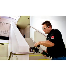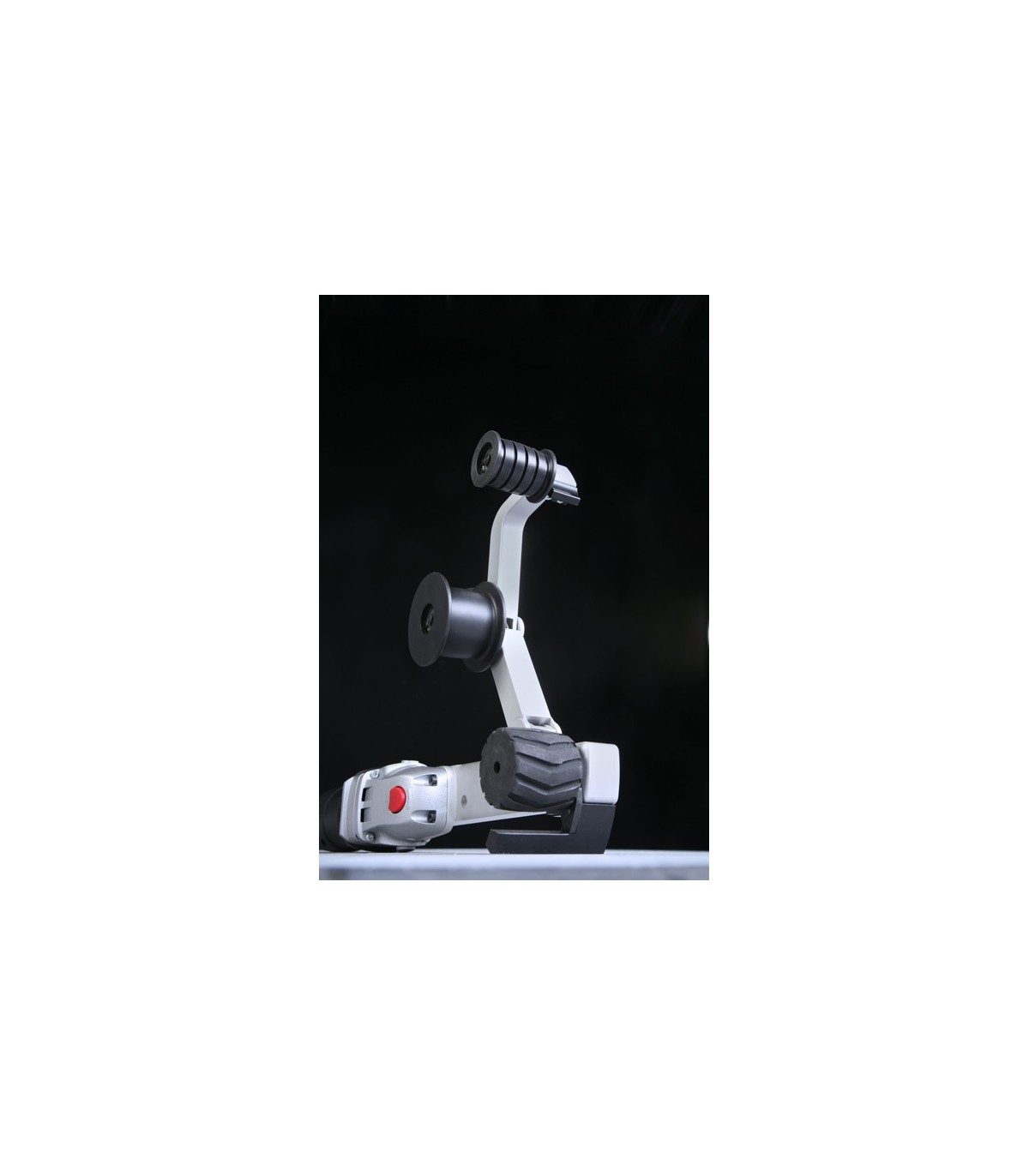 El brazo de extensión tiene un pie a prueba de impactos. Como resultado, es seguro colocar la máquina en el suelo, lo que aumenta la facilidad de uso. Se ha montado un tope de protección en el brazo. Esta es la clave para un uso sin preocupaciones de la máquina, ya que protege las piezas de trabajo contra posibles daños por parte de la máquina. El propio brazo ha sido diseñado para abrirse de forma sencilla y rápida.
