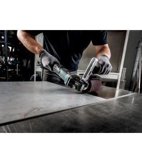 El potente motor de accionamiento de 1200 vatios tiene un engranaje planetario robusto con un par extremadamente alto. Para transmitir esta fuerza a la banda abrasiva, se utiliza una correa Multi V prácticamente indestructible con un embrague deslizante incorporado. Debido a que esta transmisión patinará antes de que la máquina alcance su punto de torsión más alto, conserva su capacidad para proteger el motor y al operador.