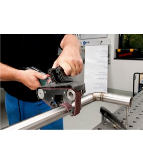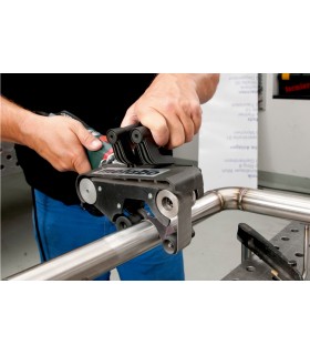 La manija redonda única en el brazo superior del Finitube es extremadamente fácil de operar, independientemente de la posición del operador. Debido a la ingeniosa posición de este mango redondo, se requiere menos fuerza para cerrar el brazo por completo. Esto permite al usuario agarrar prácticamente cualquier tubo, independientemente de su diámetro, para darle un acabado óptimo.