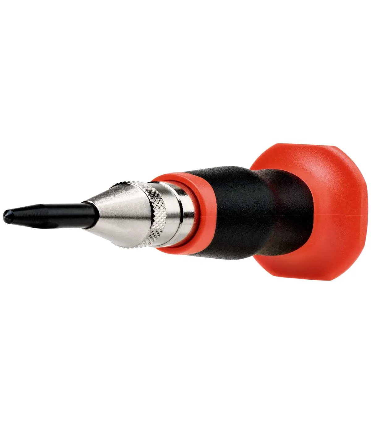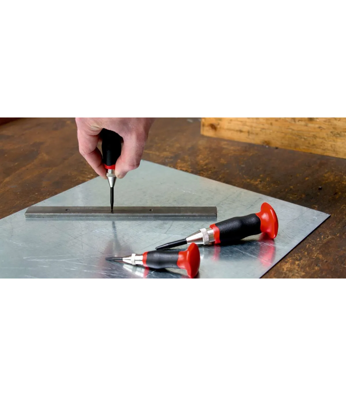 Para acero de fácil mecanización. Granete autopercutor. Puntas  intercambiables. Fuerza de percusión ajustable.