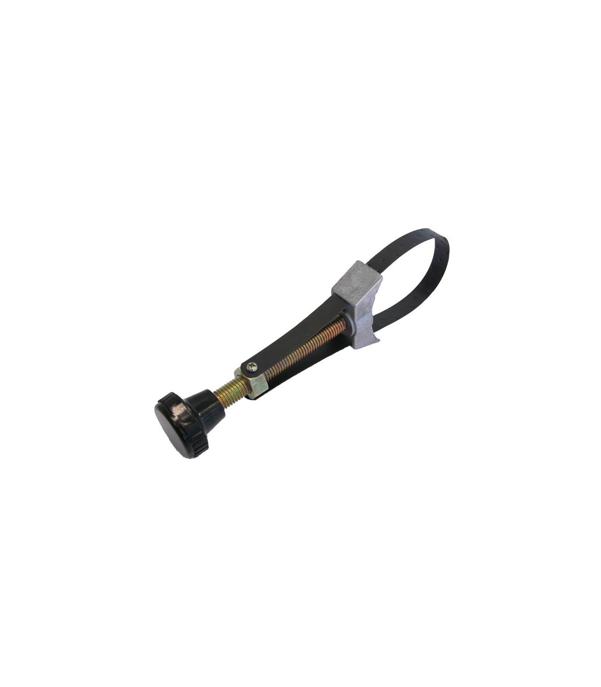 Su estructura permite ajustar la tensión del fleje alrededor del filtro, ofreciendo un agarre firme que facilita tanto el desmontaje como el montaje de filtros en espacios reducidos o de difícil acceso.