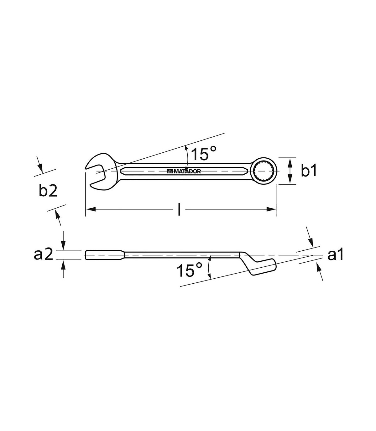 Llave combinada parte estrella-cerrada acodada -NO es la plana-. Cromada, forjada en acero de cromo vanadio.  Posición de la boca inclinada a 15°, Lado de boca en estrella acodado 70°. Acorde a DIN 3113 B, ISO3318  ISO7738