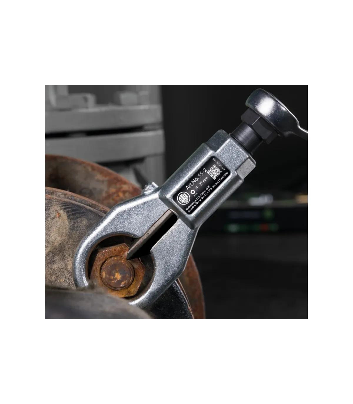 Los rompematracas mecánicos de un solo filo se utilizan para romper tuercas atascadas, oxidadas o sobreapretadas hasta una resistencia a la tracción de 800 N/mm². En este proceso de rotura, el perno roscado permanece intacto. El filo afilado del cincel, debido a su biselado, penetra profundamente en la tuerca al apretar el husillo, hasta romperla. En condiciones ambientales restringidas, cuando hay poco espacio alrededor de la tuerca, el rompematracas de un solo filo es la elección perfecta.