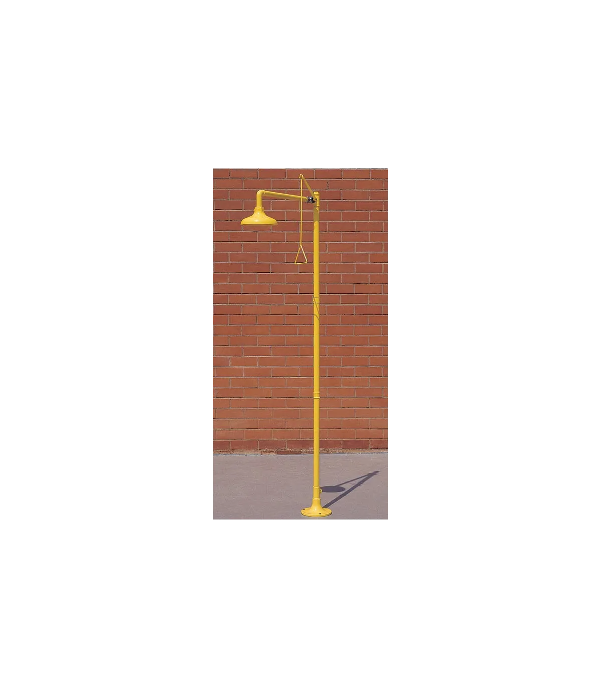 Ducha sobre pedestral en acero lacado amarillo, rociador en ABS