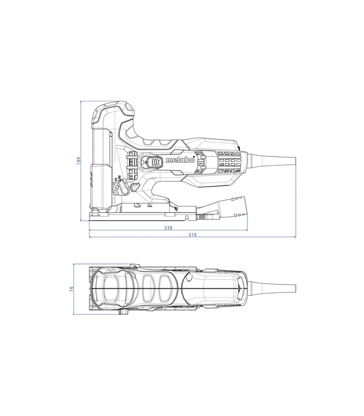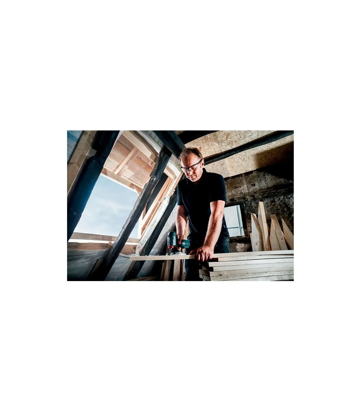 • Serrado preciso y adecuado al material gracias al número de carreras variable, carrera pendular y guía de colocación baja, apoyada por muelle de la hoja de sierra
