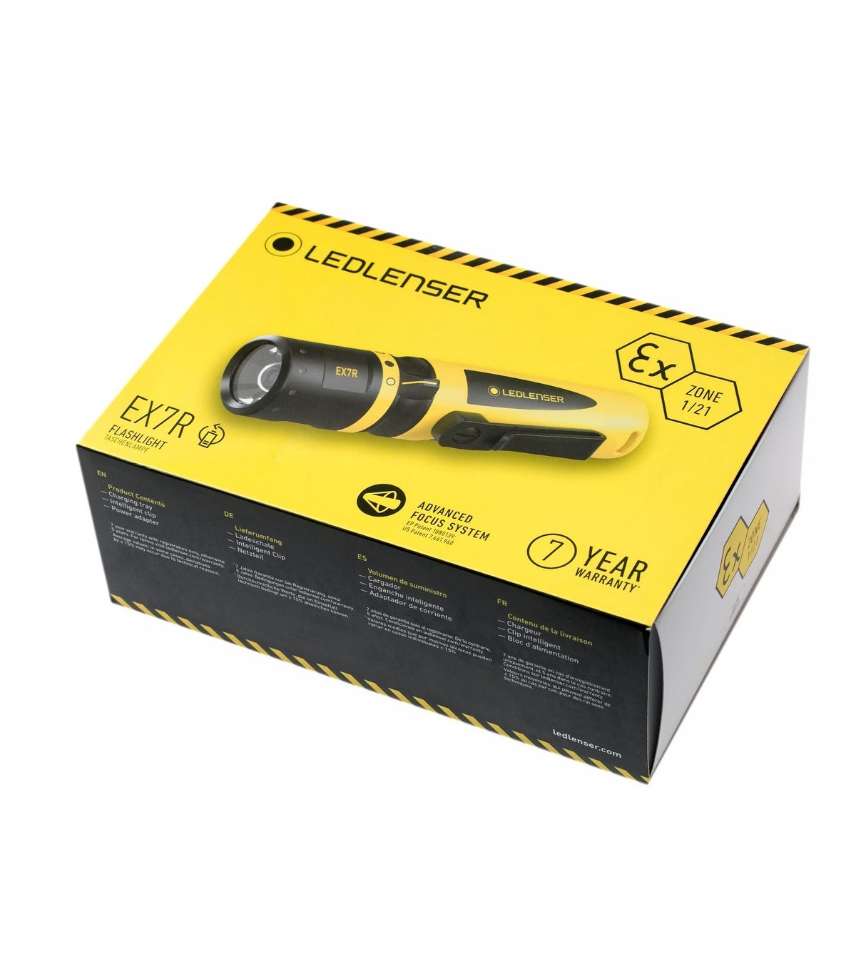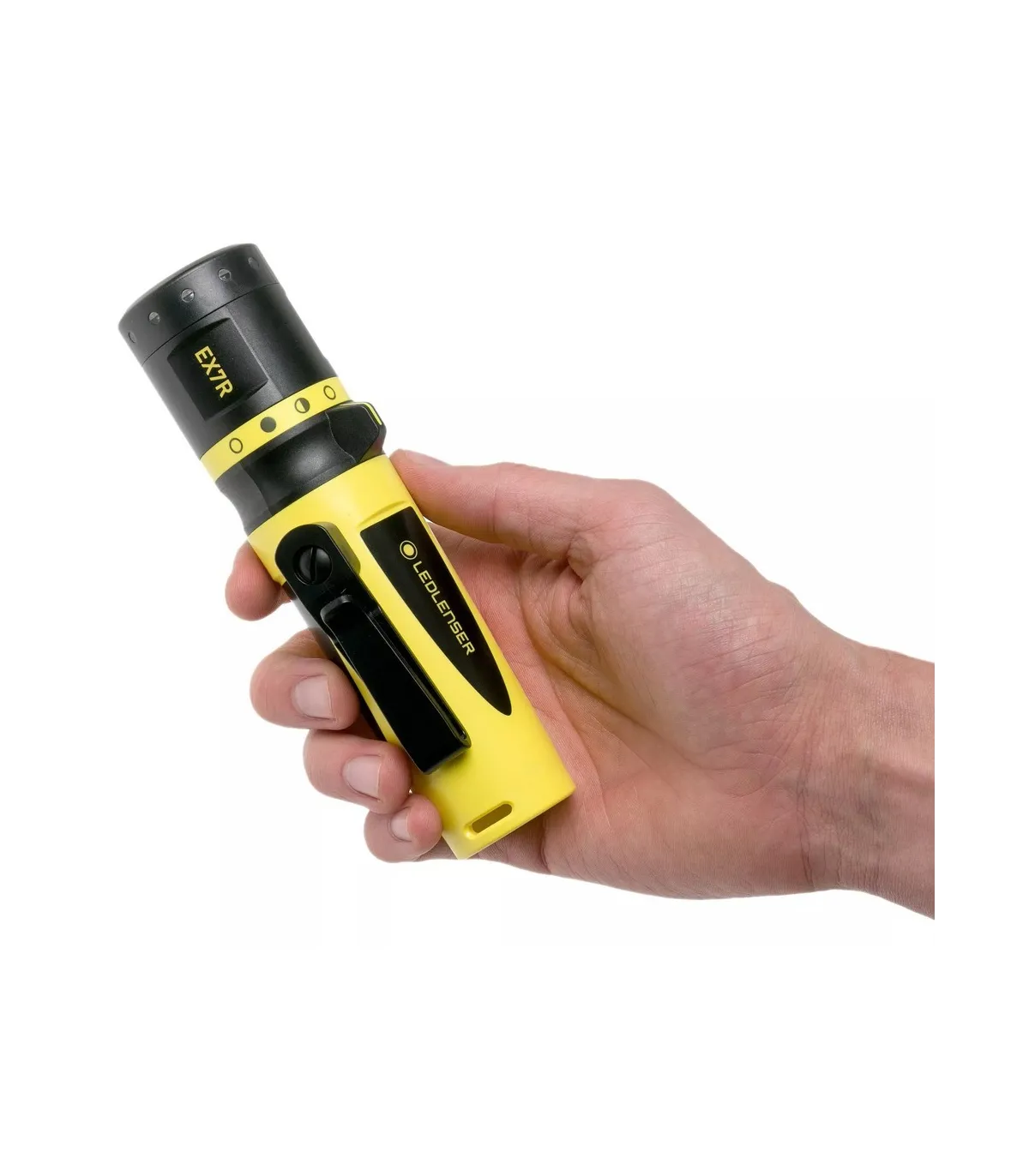 La Ledlenser EX7R de zona 1, es fácil trabajar con ella, no solo porque pesa nada mas que 228 g, sino por que el interruptor magnético se puede controlar fácilmente con guantes de trabajo. Posee un sistema de enfoque avanzado. La base de carga que incluye, hace que la batería sea muy fácil de cargar, con una duración máxima de 45 horas. Tiene una potencia máxima de 220 lúmenes y un alcance de máximo de 140 metros. Utiliza un pack de bateria recargable 18650.