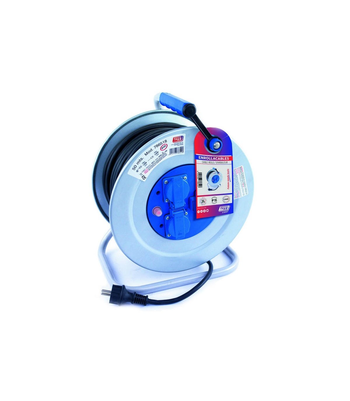 Los enrollacables Tayg de IP55 y 4.000W son una solución ideal para trabajos eléctricos exigentes. Equipados con una potencia máxima de 4000W a 250V, estos dispositivos ofrecen flexibilidad y rendimiento óptimo. La longitud del cable varía entre 25 y 50 metros, según el modelo elegido, brindando alcance suficiente para diversas tareas.