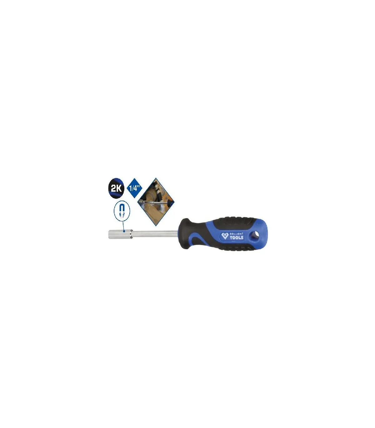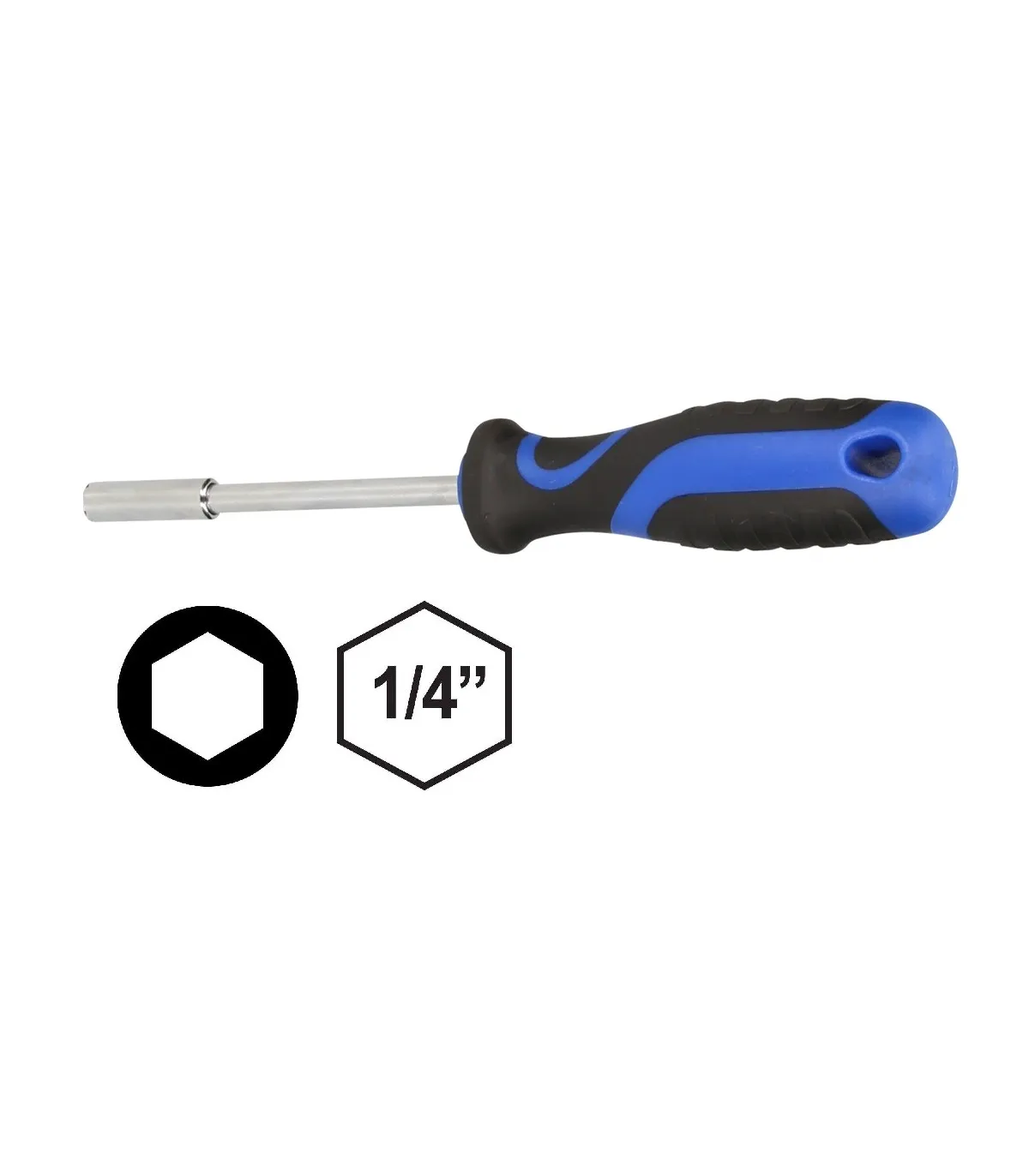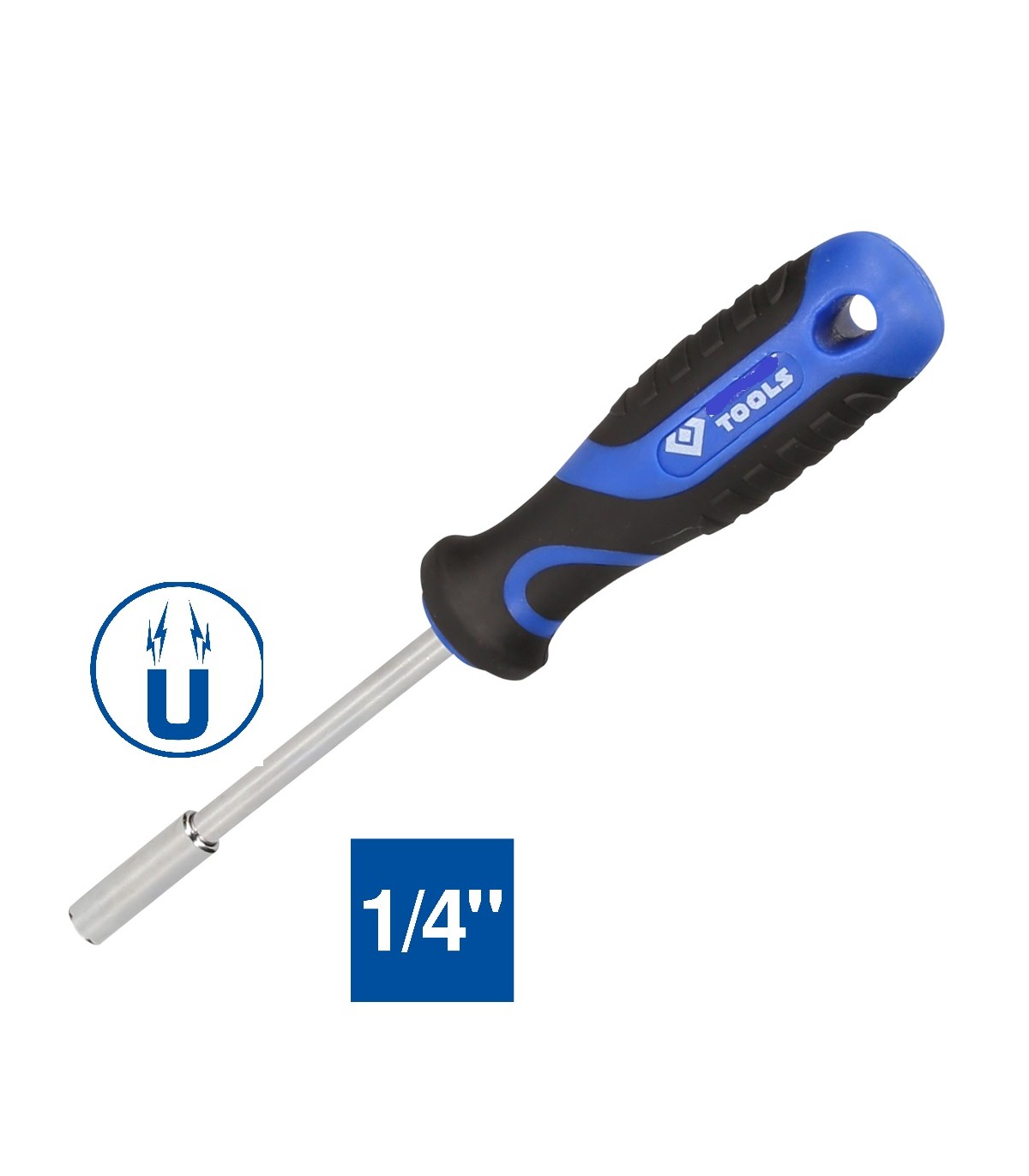 El destornillador para puntas intercambiables es un portapuntas con un fuerte imán permanente y una sujeción hexagonal de 1/4" para todas las puntas más comunes. El mango ergonómico garantiza un trabajo eficiente, preciso y sin esfuerzo. Gracias a la forma de su mango, permite una transmisión óptima de la fuerza con el mínimo esfuerzo para la mano.