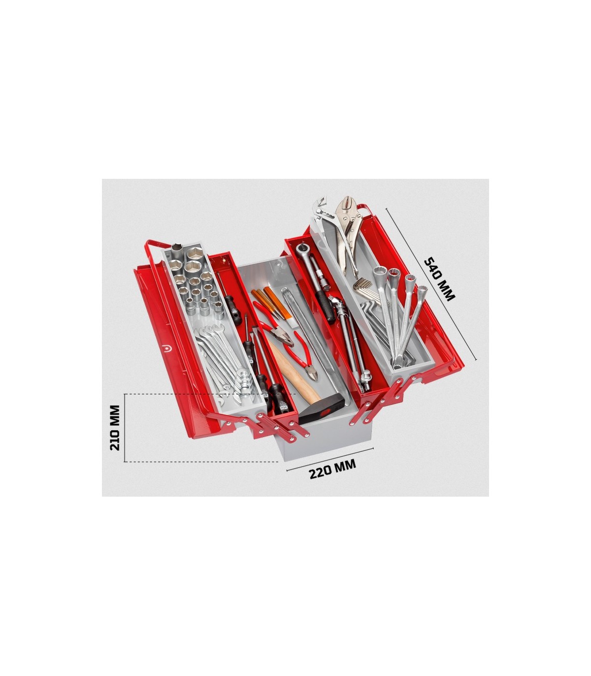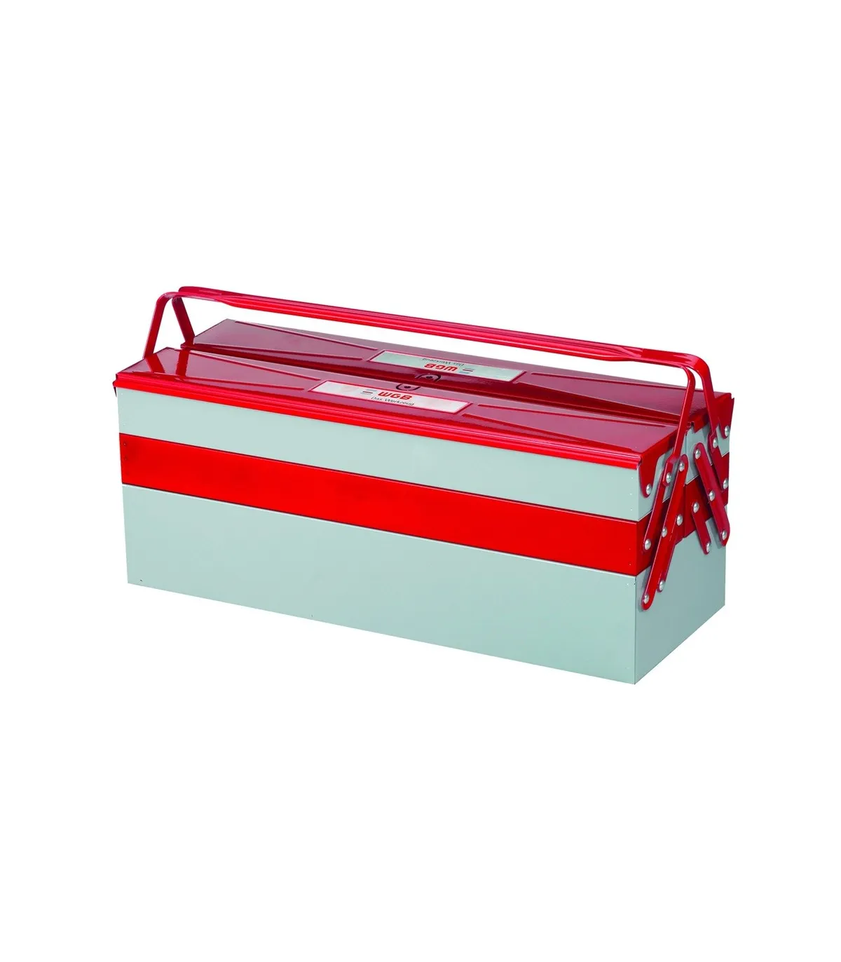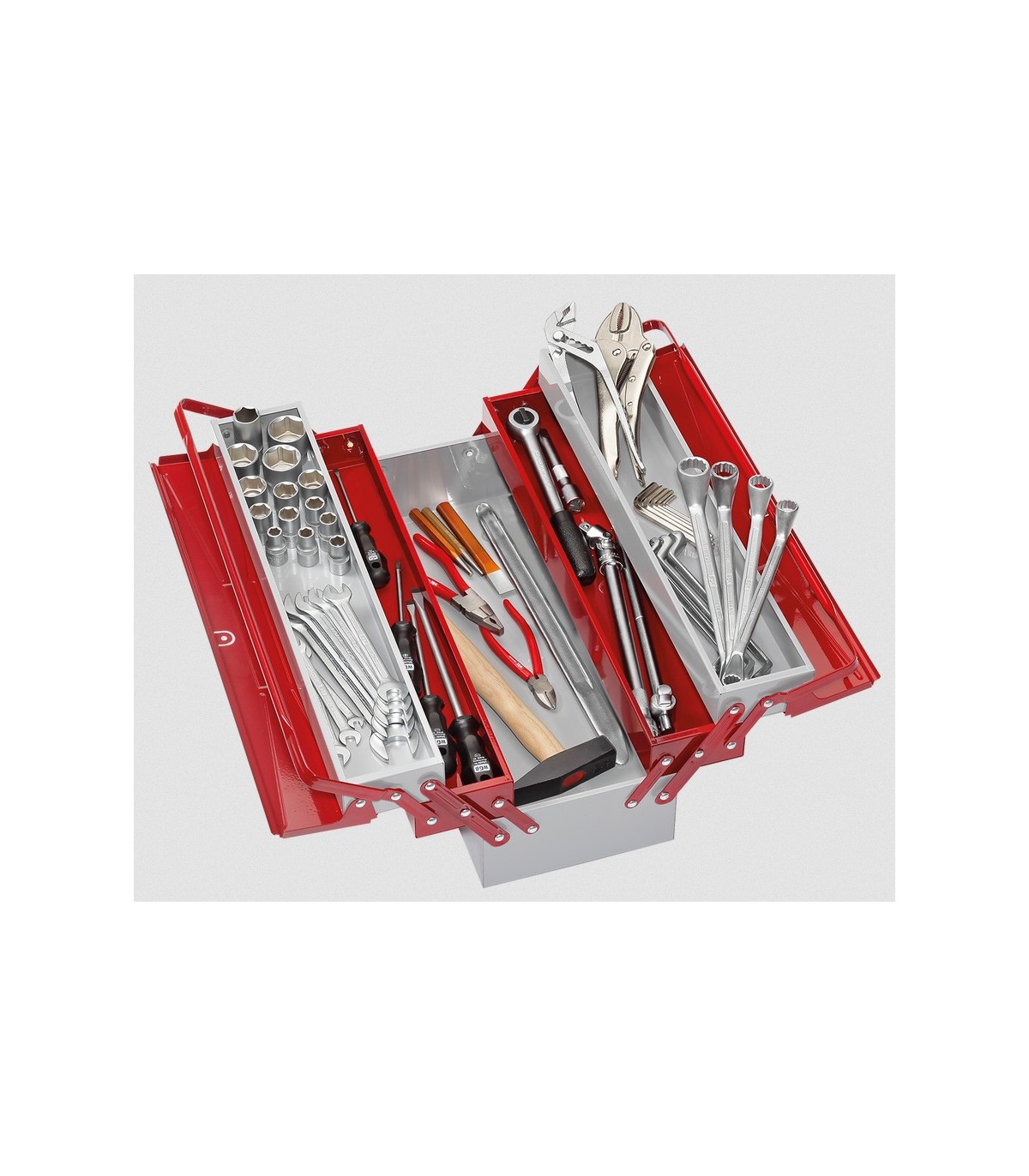 Caja de herramientas metálica, en chapa de acero pintoda epoxi de 5 compartimentos.