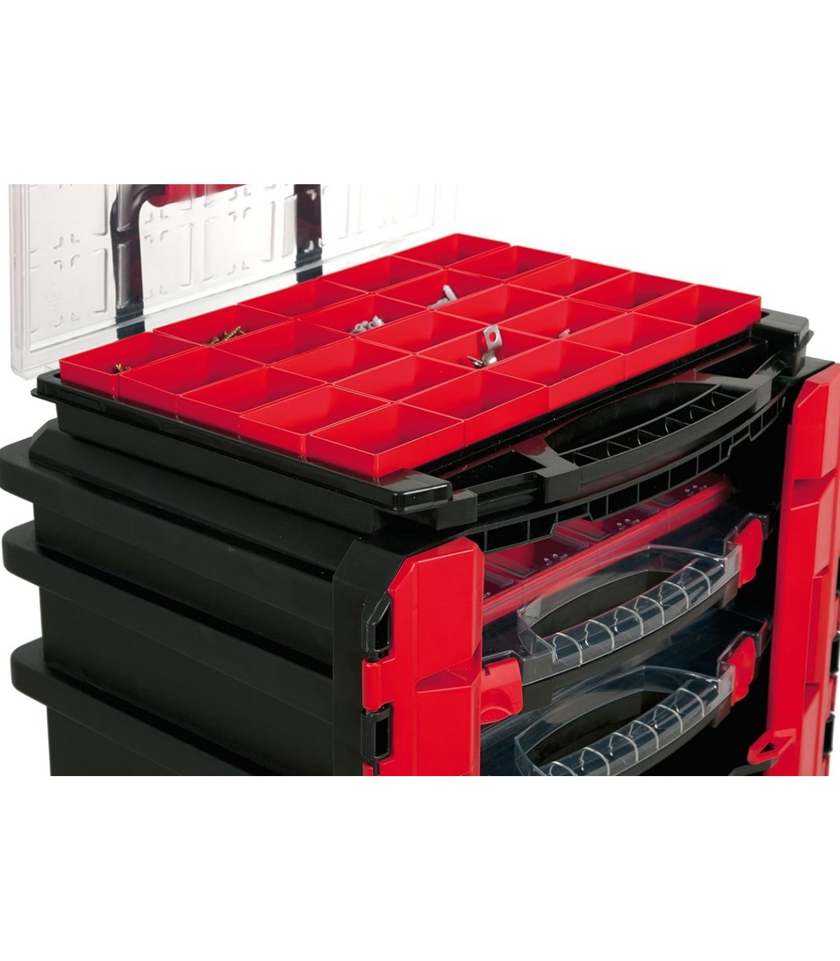 Con 25 cajones organizadores de diferentes tamaños, esta caja ofrece una gran capacidad de almacenamiento para todo tipo de herramientas, desde pequeñas piezas hasta herramientas más grandes y voluminosas.