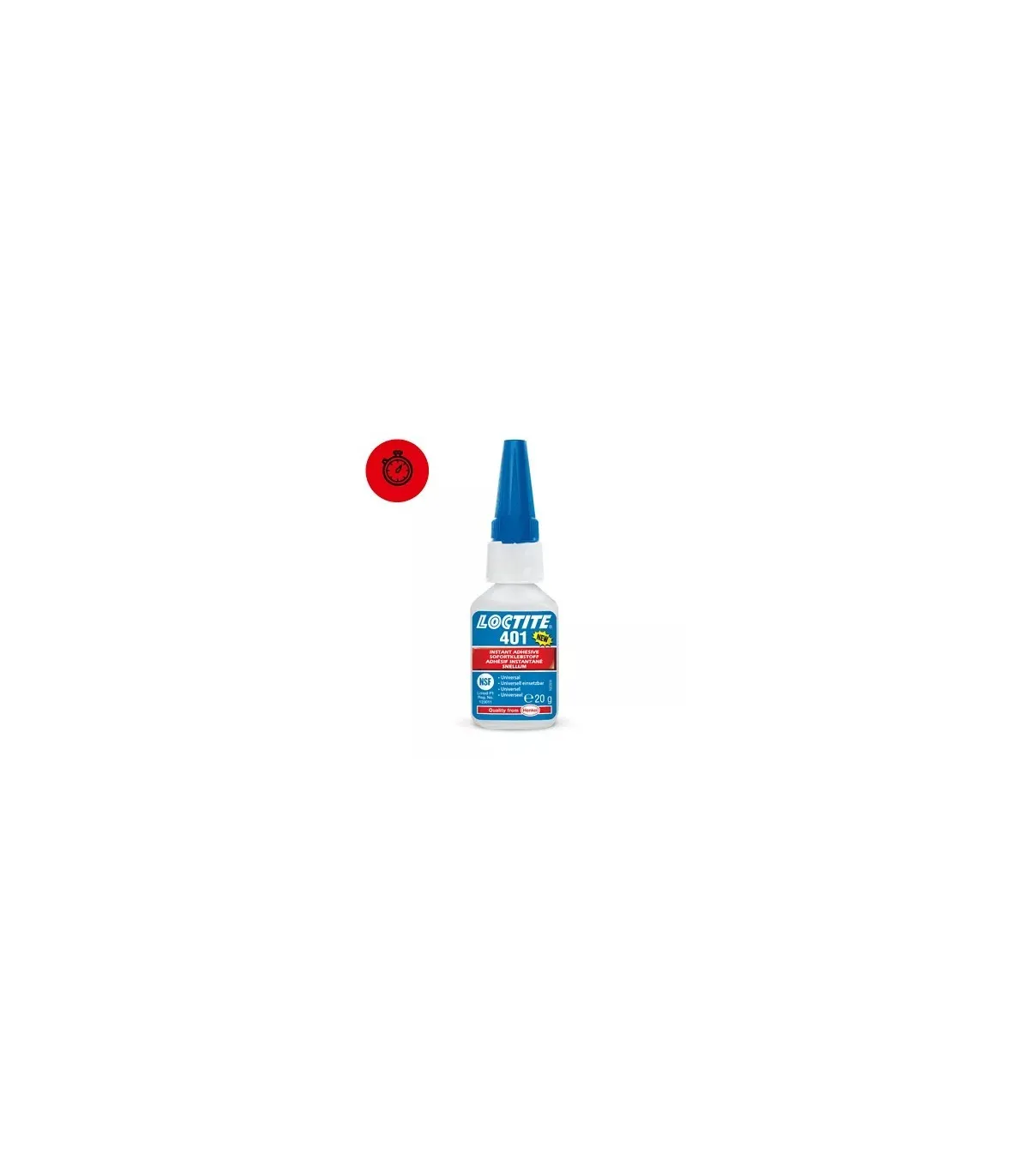 LOCTITE 401 es un adhesivo instantáneo diseñado para el montaje de materiales difíciles de unir que requieran una distribución uniforme de las tensiones y gran resistencia a la tracción y la cizalladura. El producto proporciona adhesión rápida a una amplia variedad de materiales, como metales, plásticos y elastómeros. LOCTITE 401 también es adecuado para unir materiales porosos como madera, papel, cuero y tela. Perfecto para reparaciones rápidas y todo tipo de pequeñas reparaciones de emergencia.Adhesivo instantáneo de uso generalMuy alta resistencia en piezas ajustadasPerfecto para reparaciones rápidas y todo tipo de pequeñas reparaciones de emergenciaUne sustratos similares o combinaciones de sustratos diferentes (metales, caucho, madera, cartón, cerámica, así como la mayoría de plásticos)