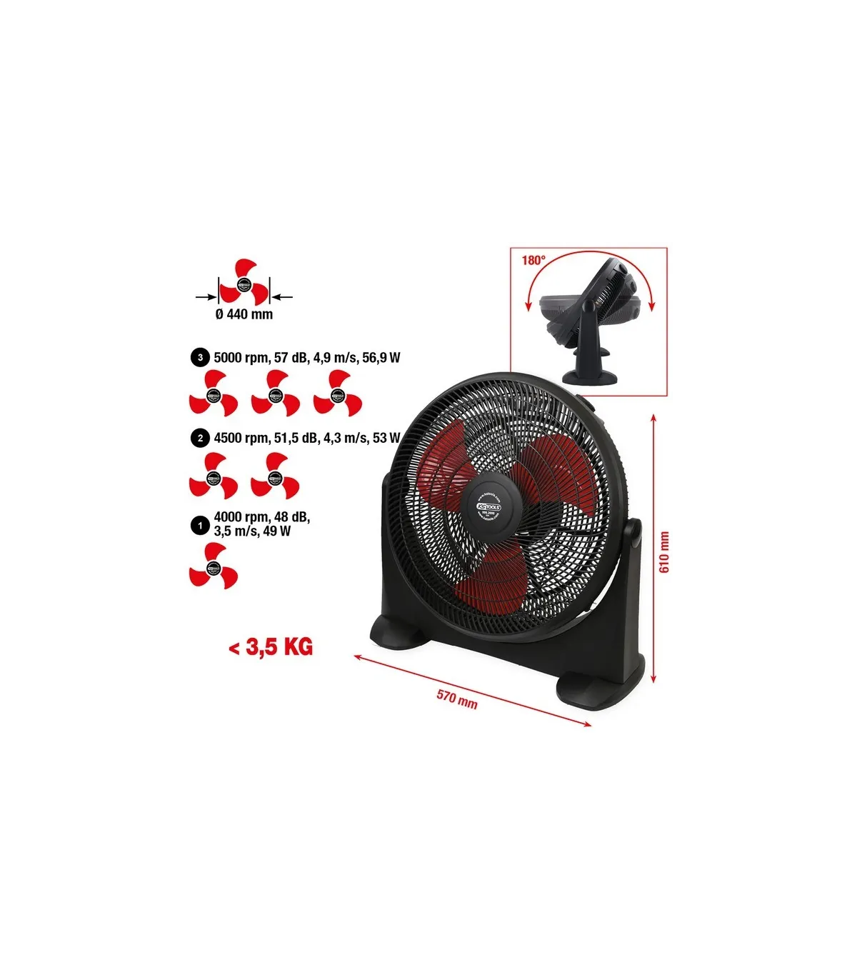 Ventilador de la marca KS Tools, muy ligero y silencioso, de carcasa plástica, diámetro aspas