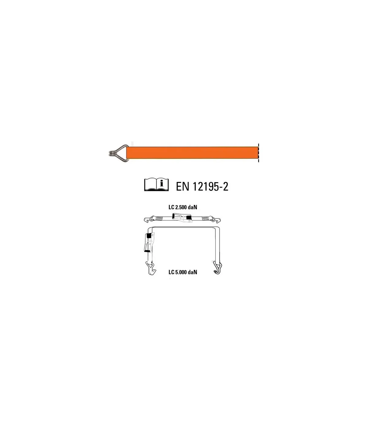 Fabricado en poliéster de alta tenacidad, para una tensión máxima de 5000 KG (coeficiente de seguridad 2:1)