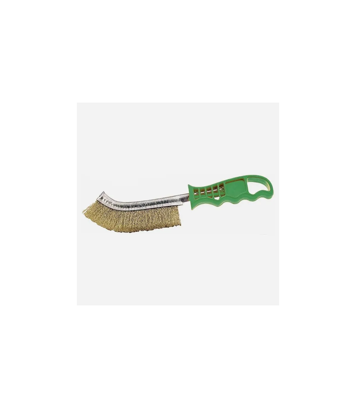 Cepillo manual de pua ondulada de 0,30mm en alambre de 100% latón, largo 225mm con mango de plástico ergonómico.