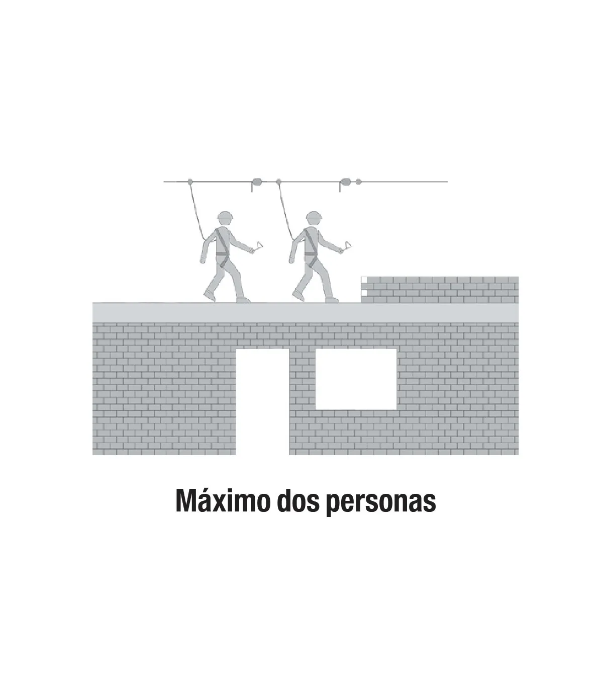 La linea de vida horizontal es una cinta de seguridad de alta resistencia que se sujeta a la estructura y a la cual los trabajadores enganchan sus arneses anticaidas.