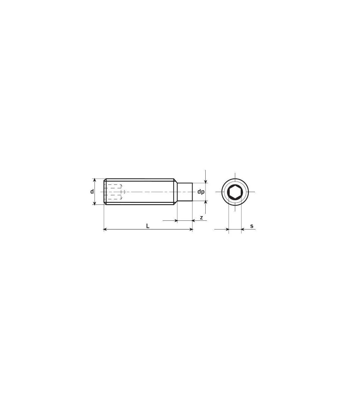 M8x40 ESPARRAGO ALLEN C/PIVOTE DIN 915 45H ACERO NEGRO