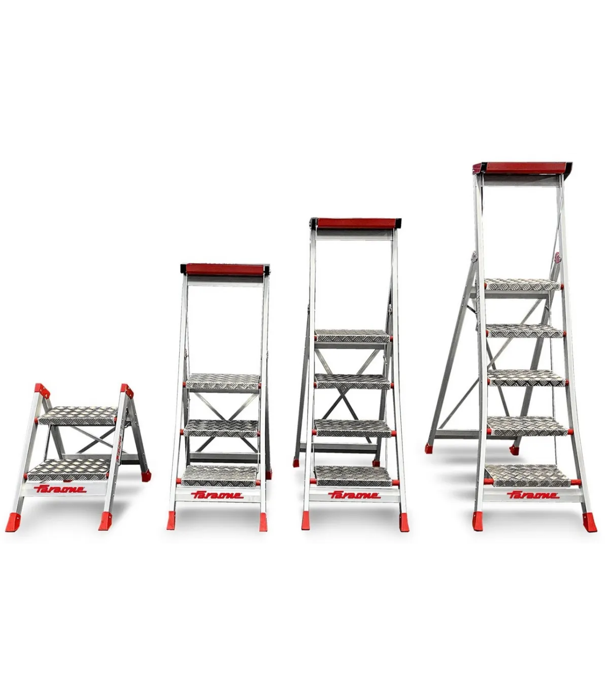 Taburete plegable, fácil de manejar, en aluminio anodizado y peldanos en acero inoxidable