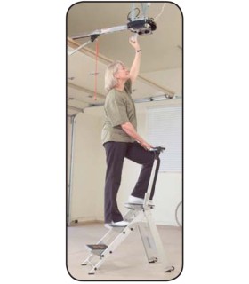Peldaños amplios de 23x36 cm, bandeja  porta objetos incluida, barandilla de protección de 60 cm de altura.